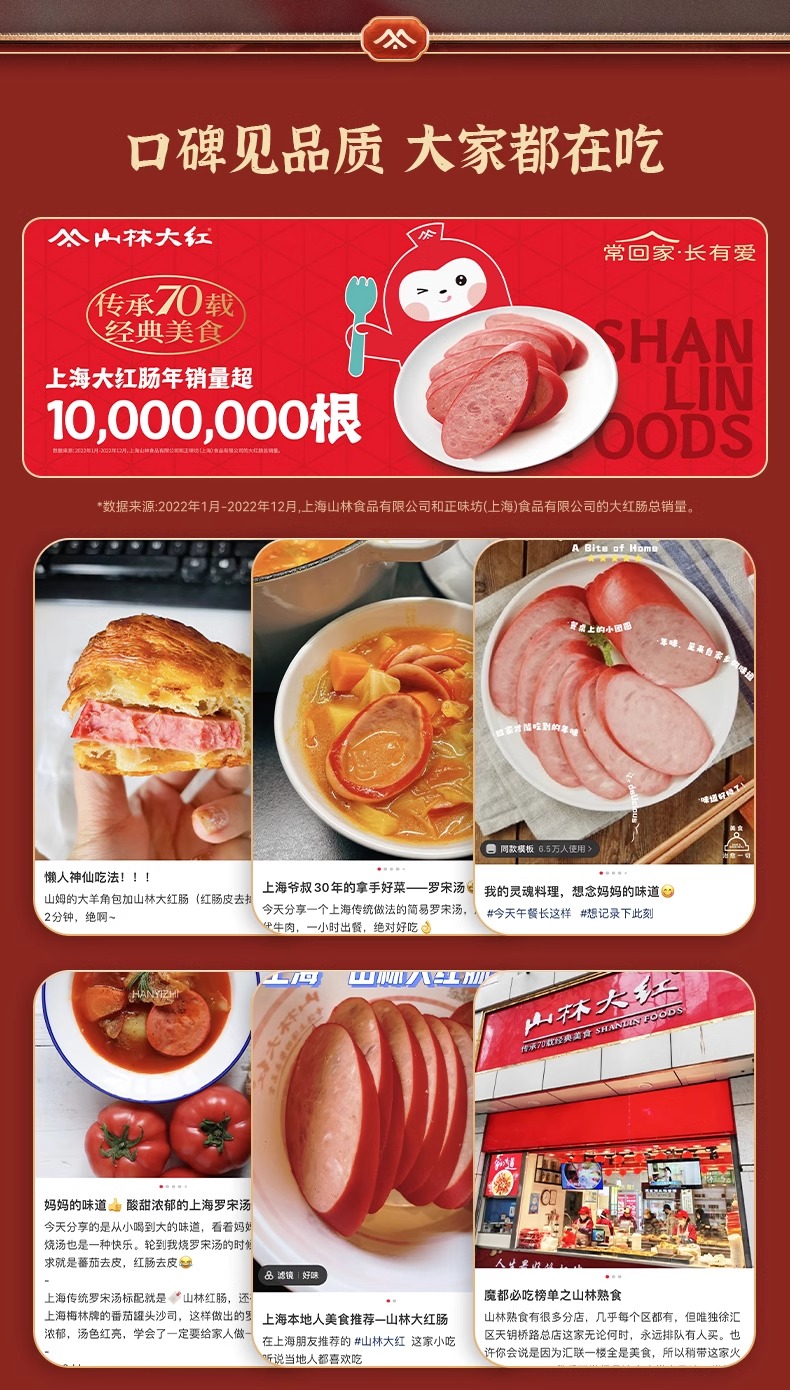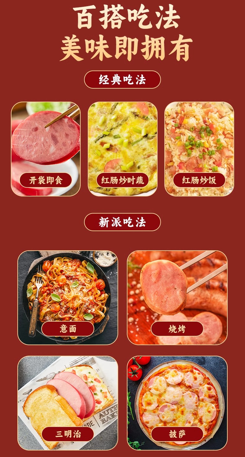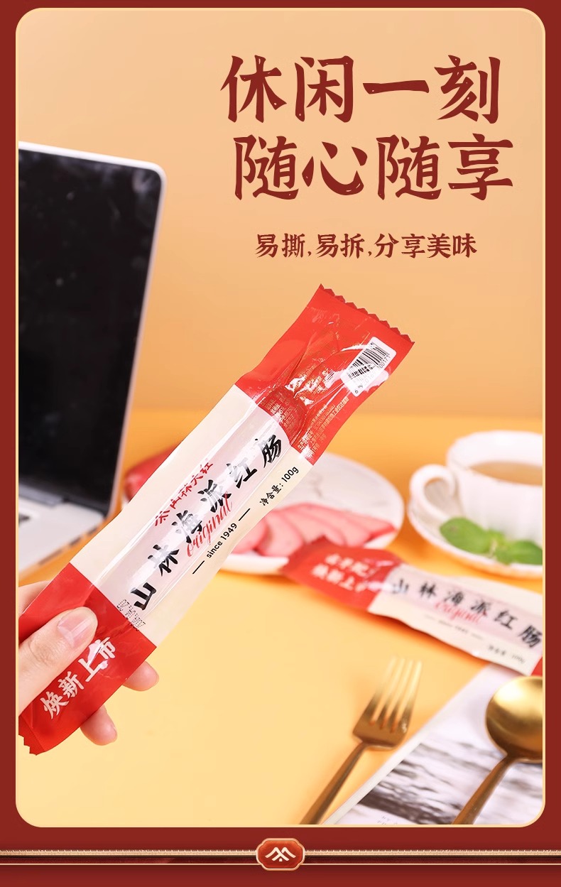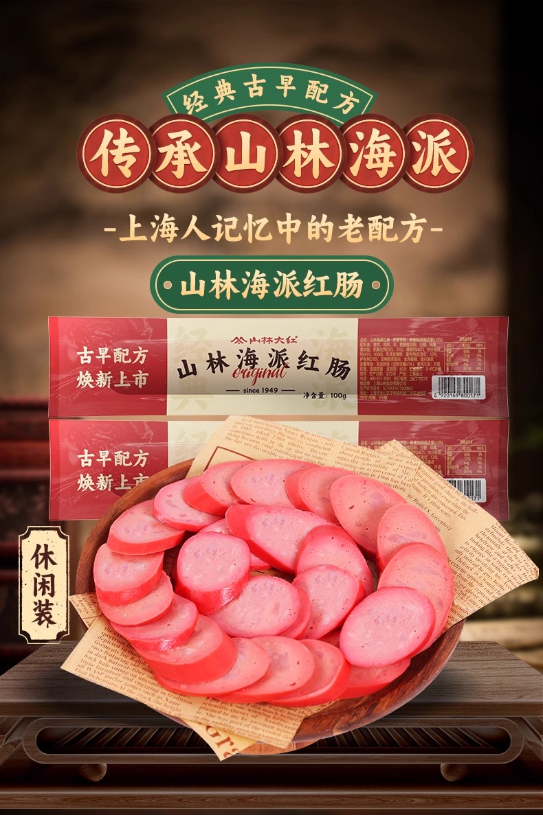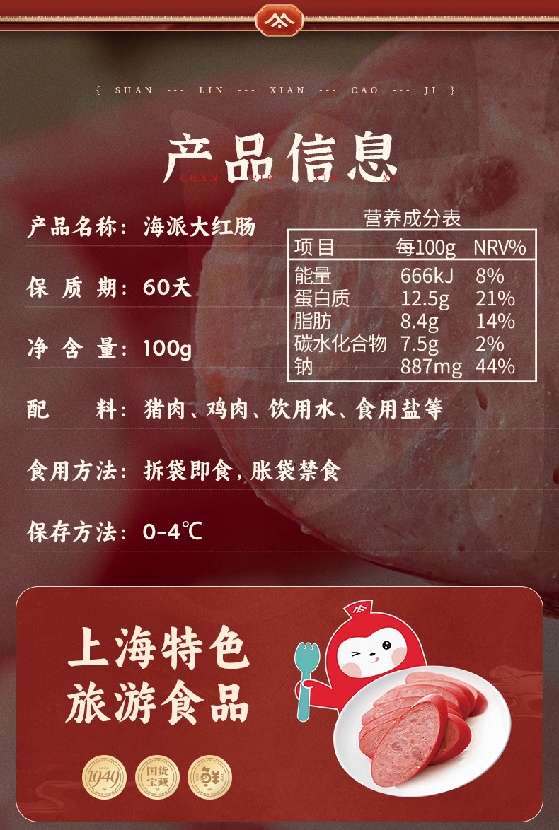 山林大红海派大红肠正宗上海特产风味烤肠肉肠即食火腿肠香肠100g