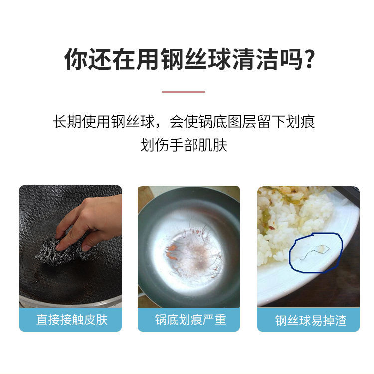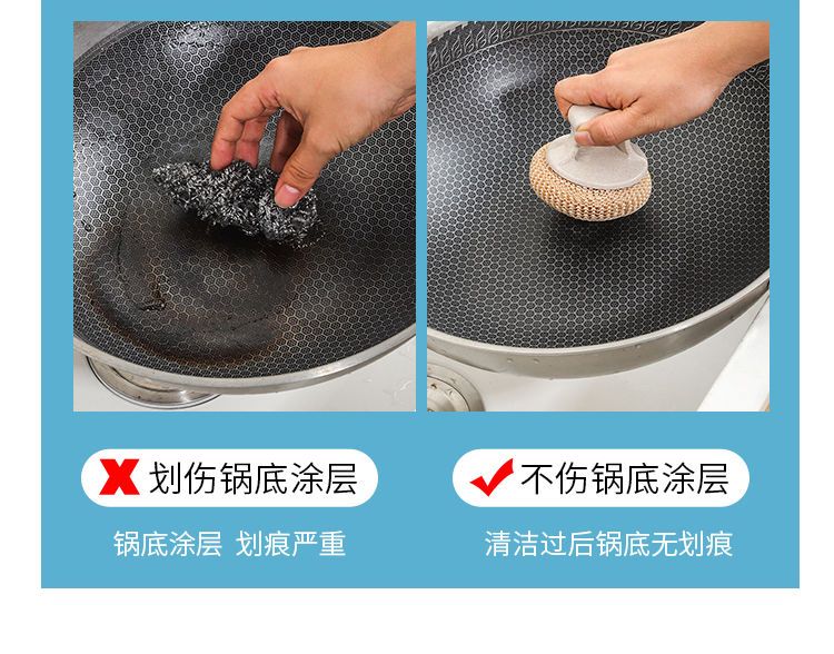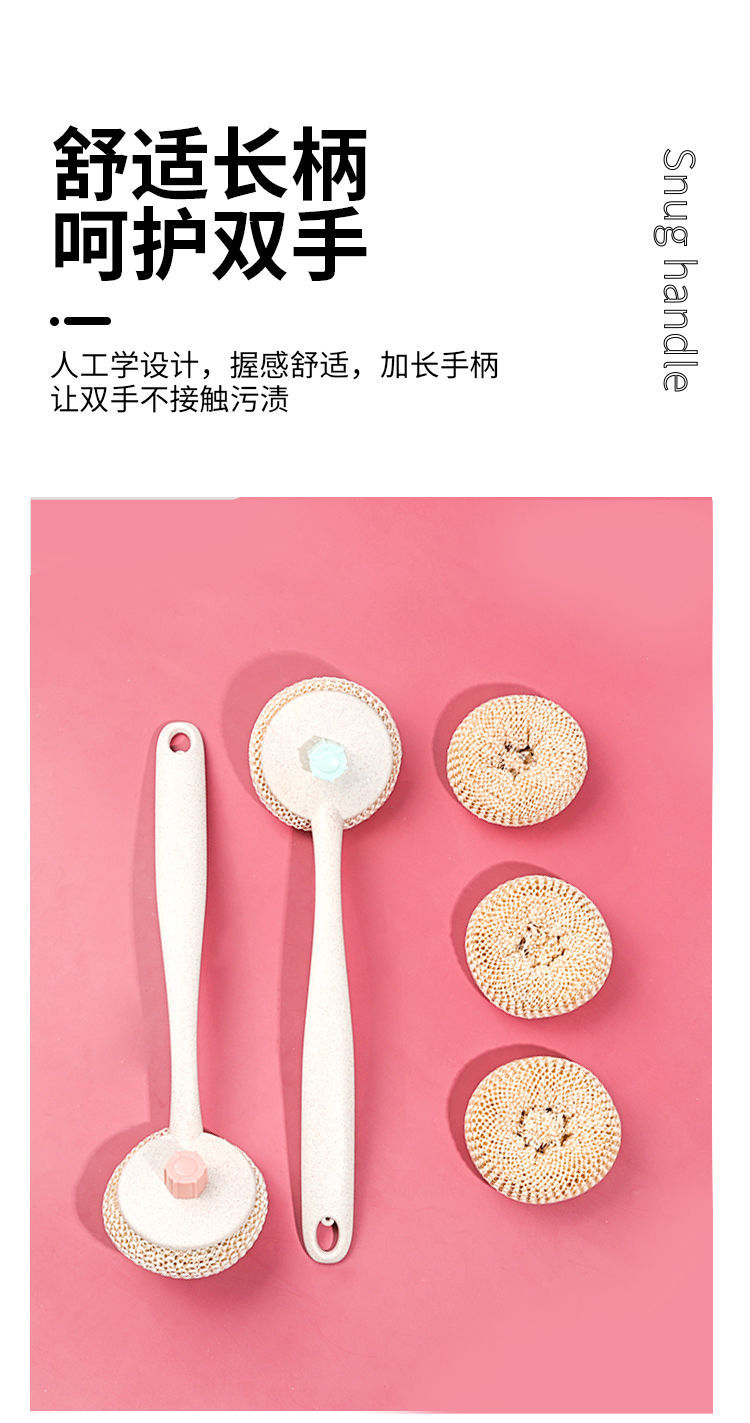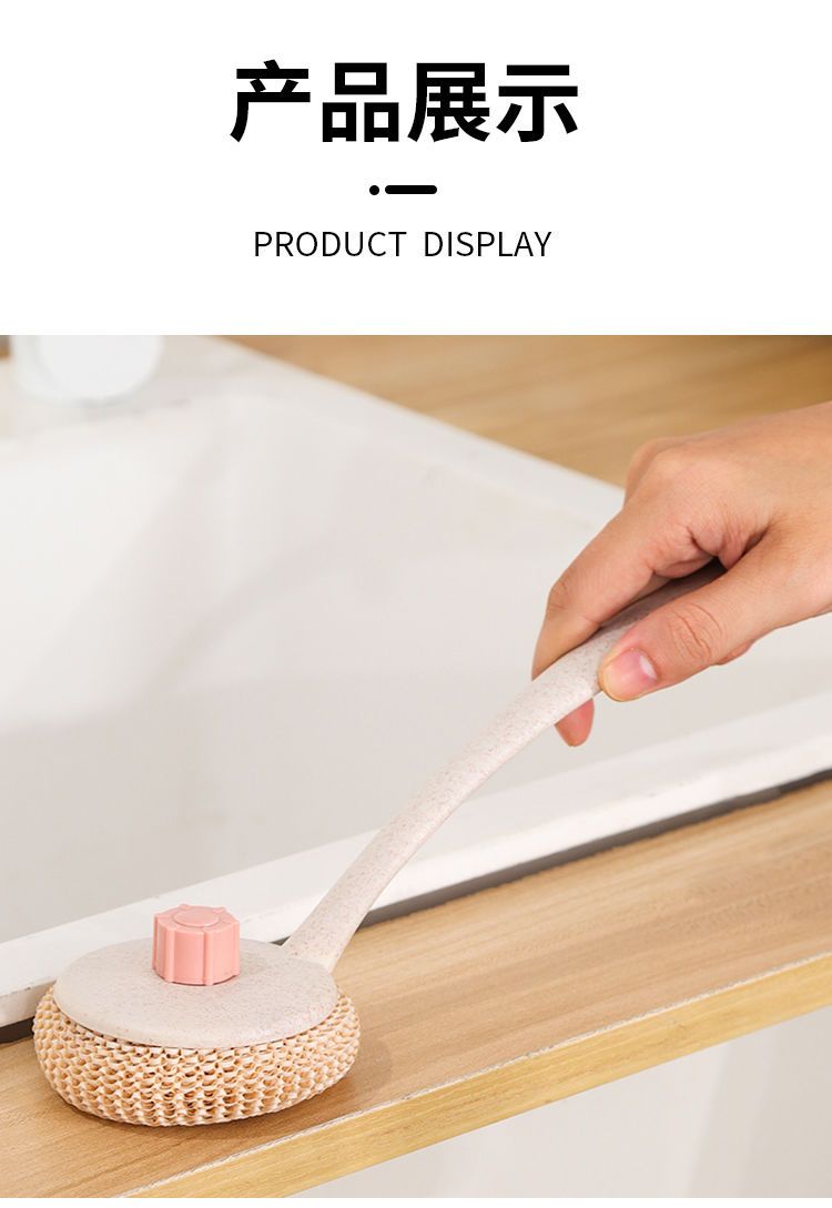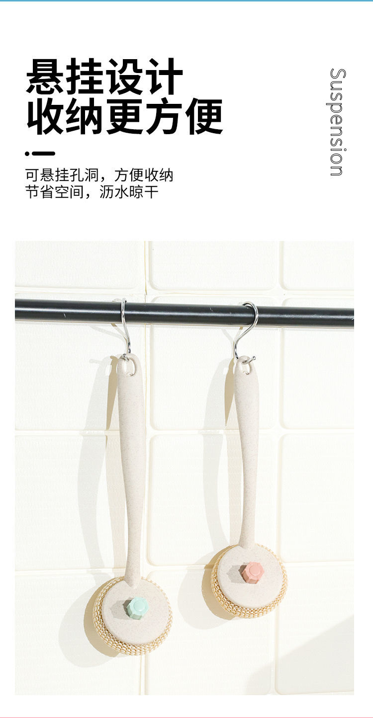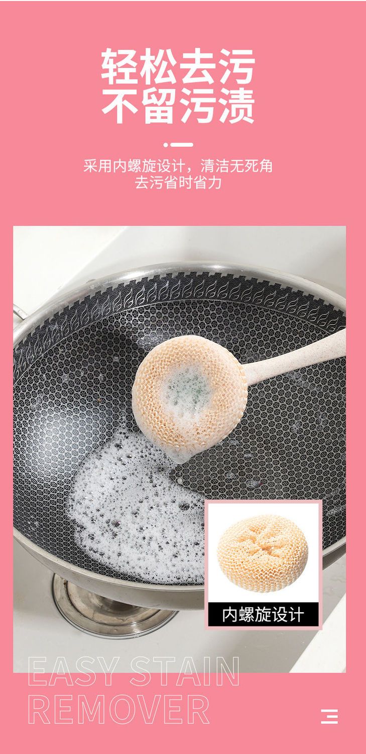 【10只装】小麦秸秆清洁球竹纤维纳米刷锅神器带手柄钢丝球不掉渣家用洗锅刷