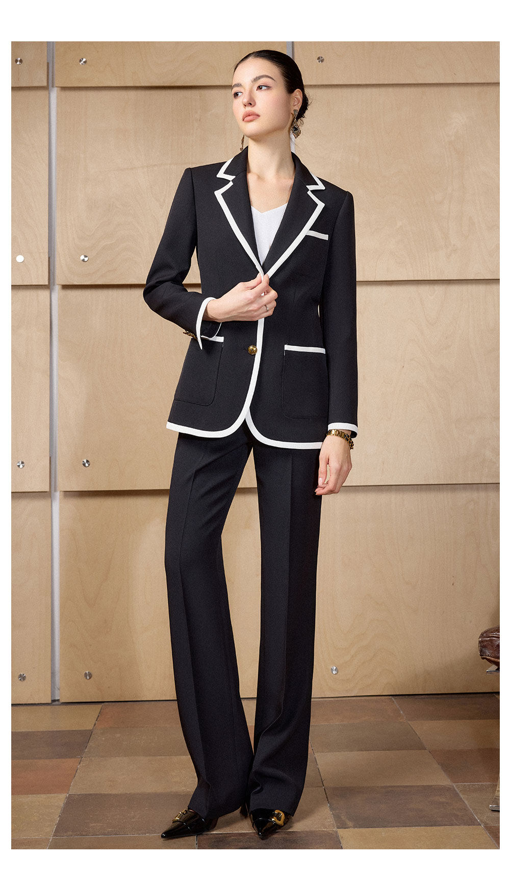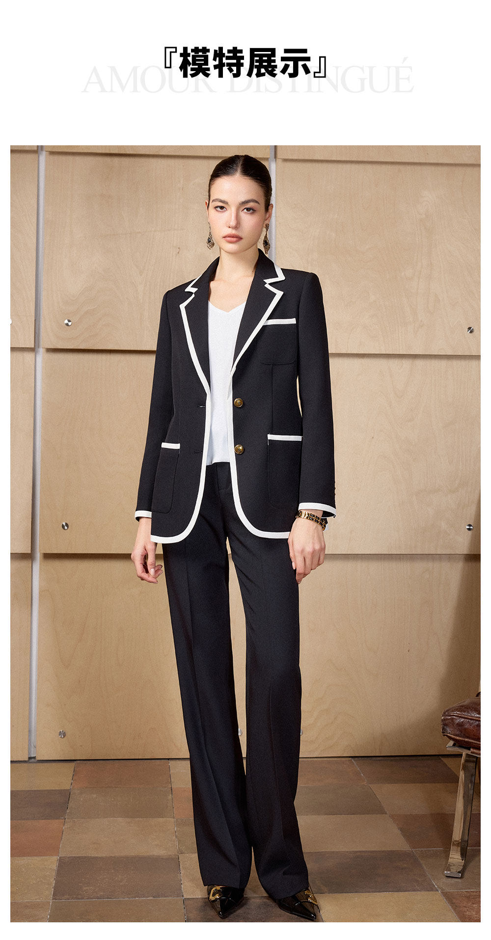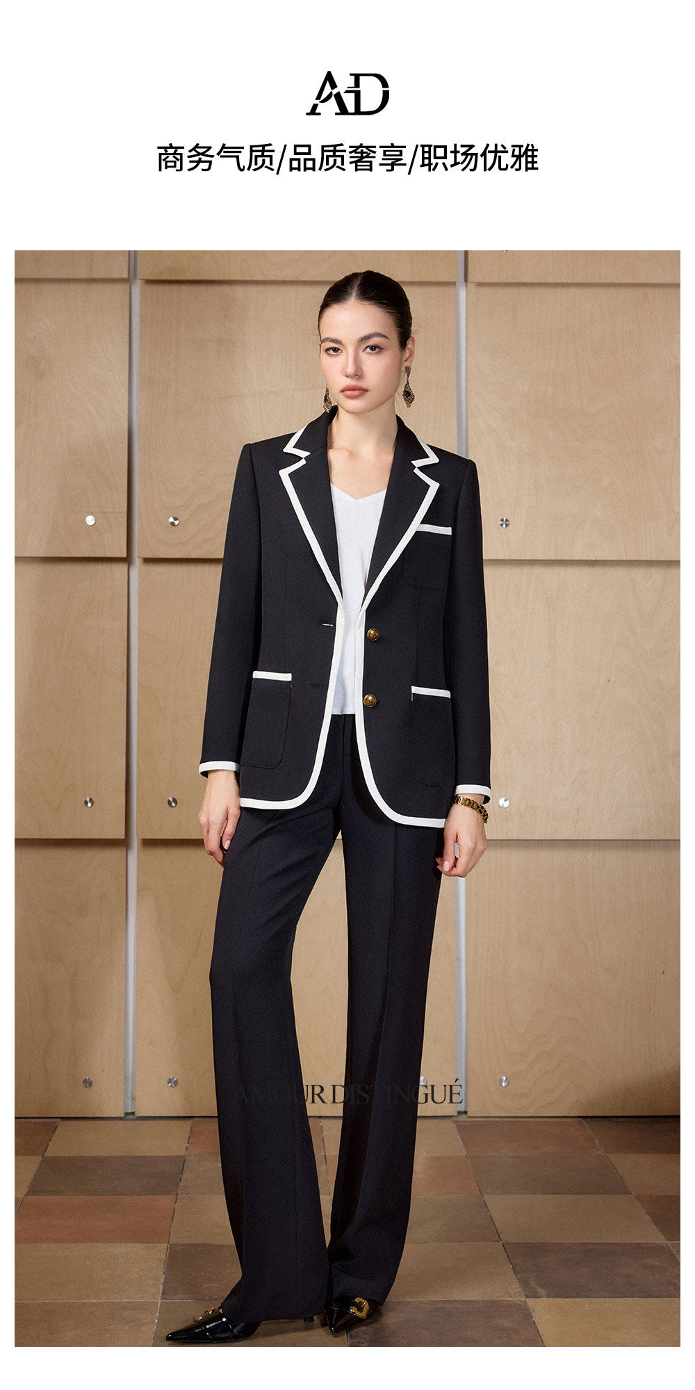 AD老钱风黑色撞色包边西装套装女春秋2026新款高级感巨好看一整套