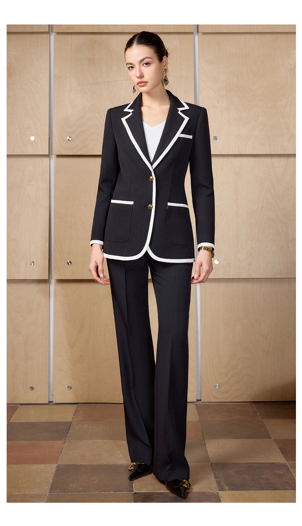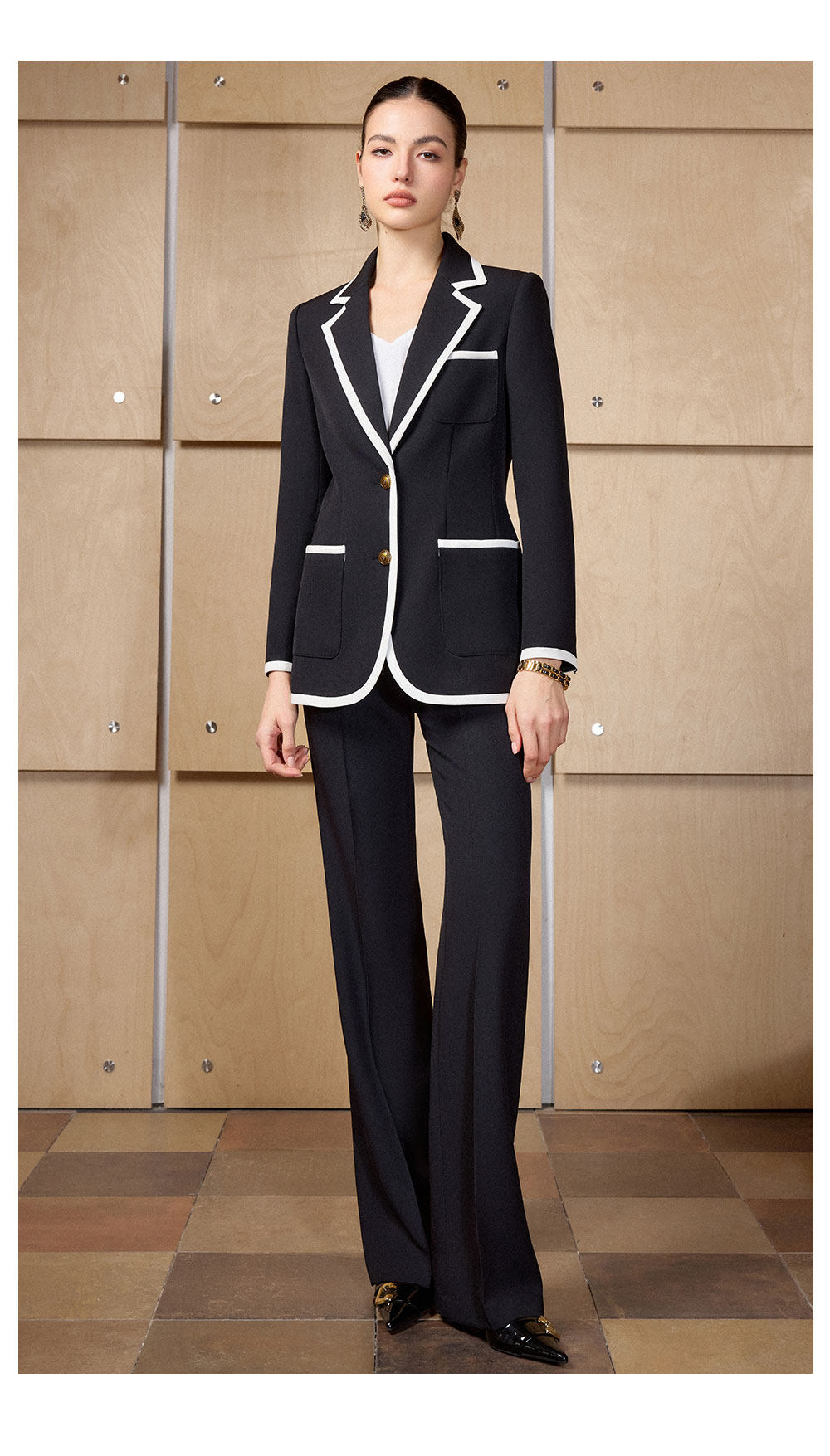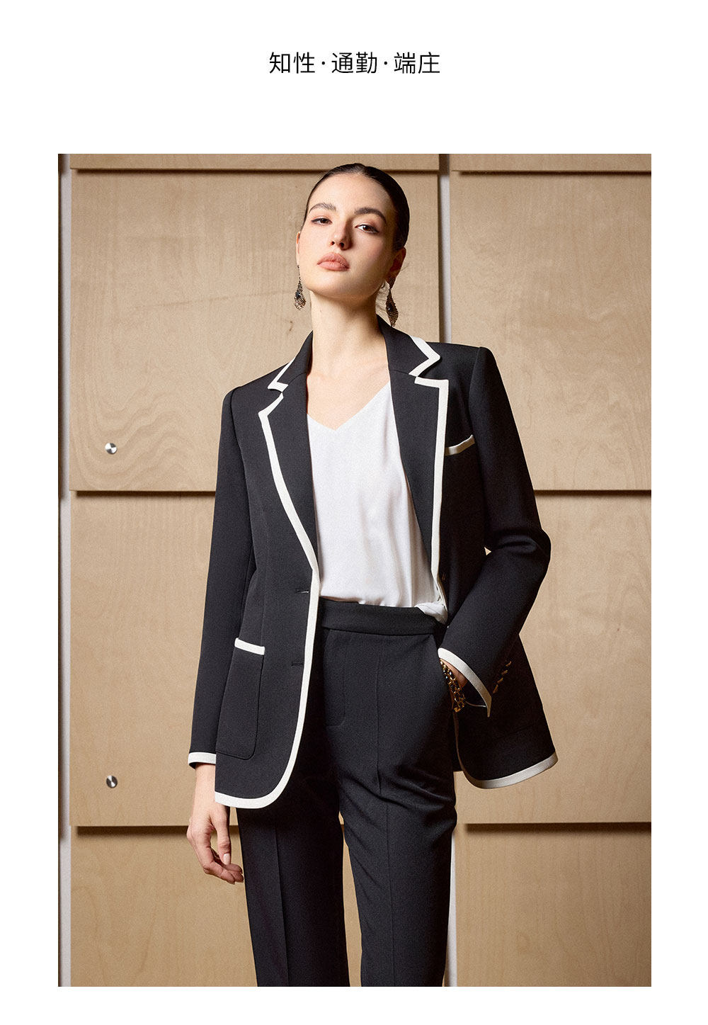 AD老钱风黑色撞色包边西装套装女春秋2026新款高级感巨好看一整套