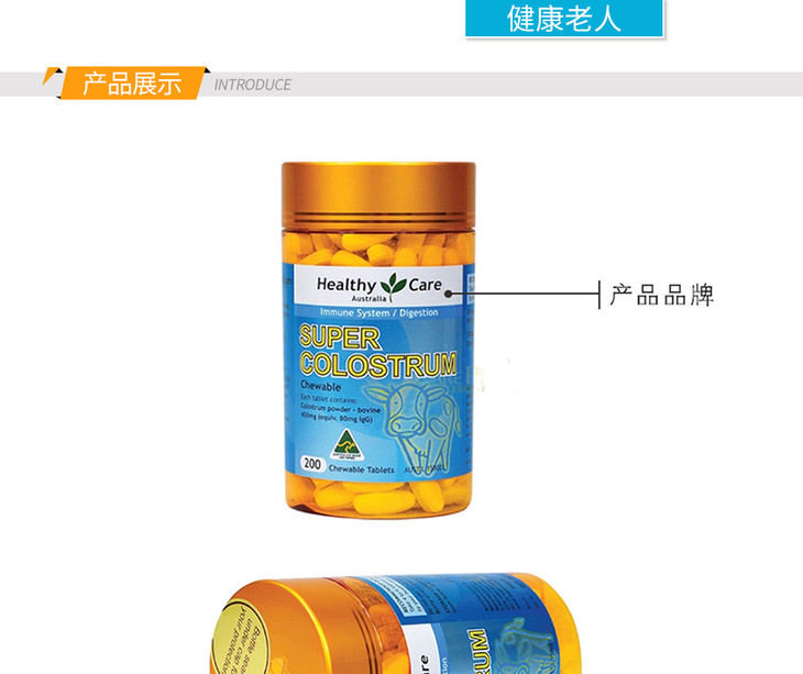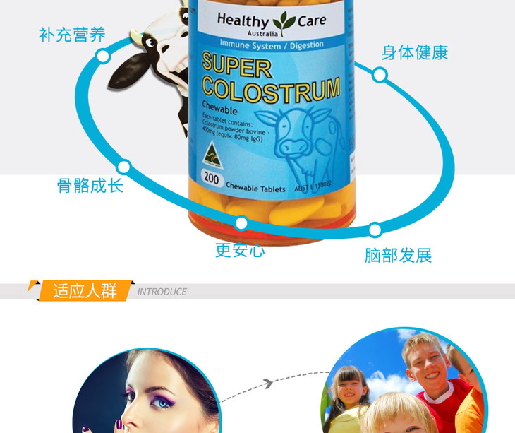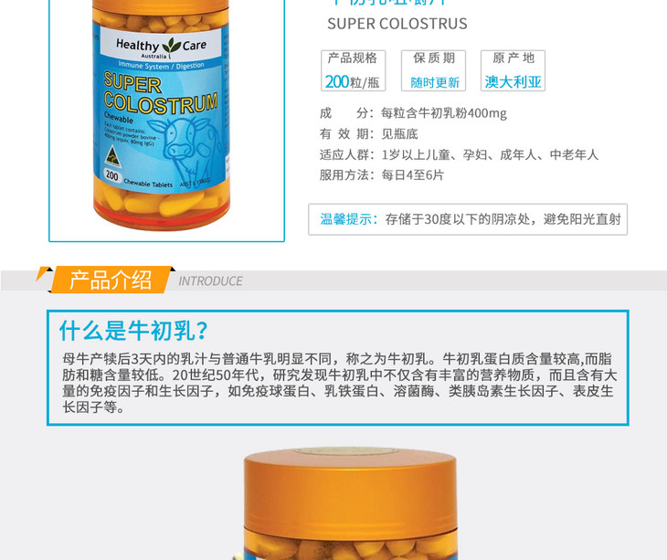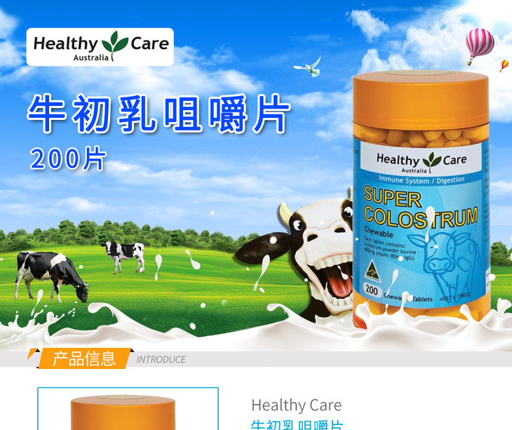 (永久下架)澳洲Healthy Care 天然牛初乳片 200粒