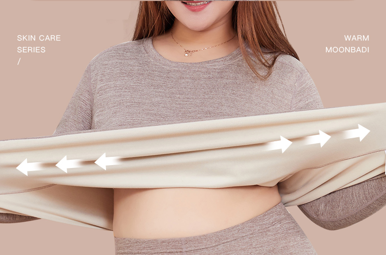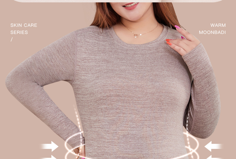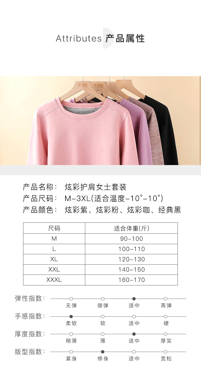梦芭蒂双面绒秋衣秋裤套装大码胖mm女士保暖内衣炫彩护肩女士套装