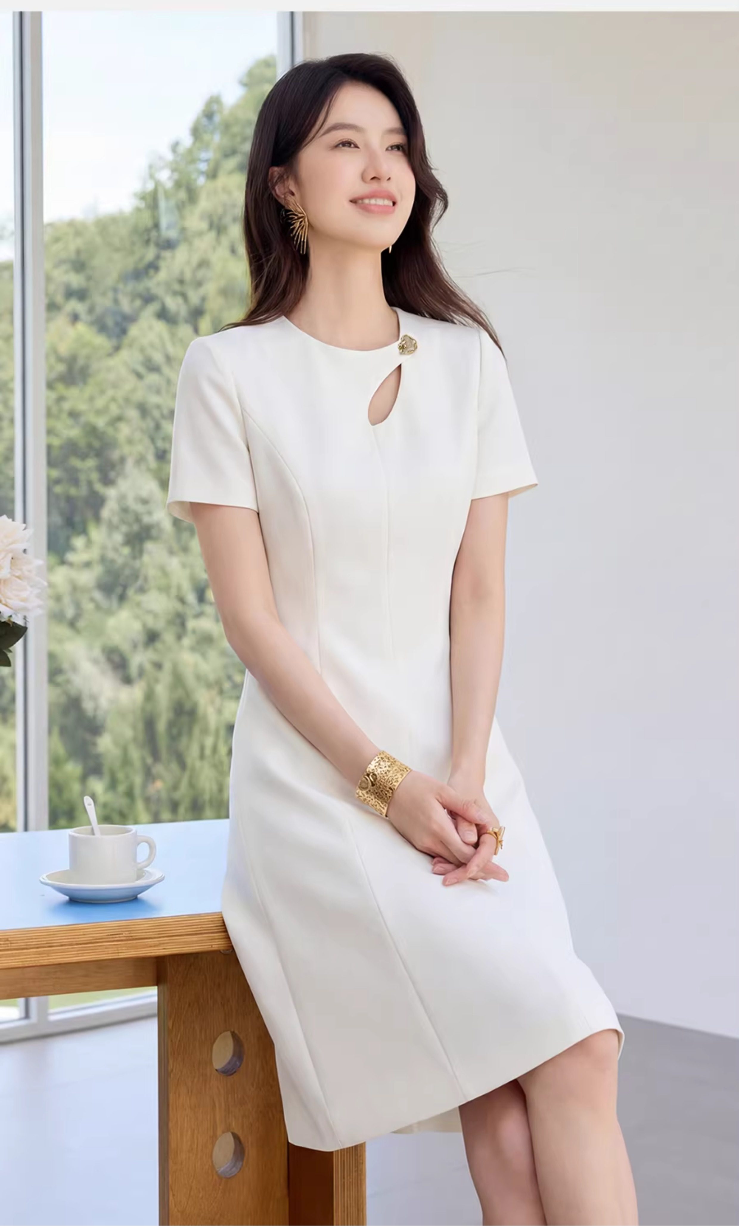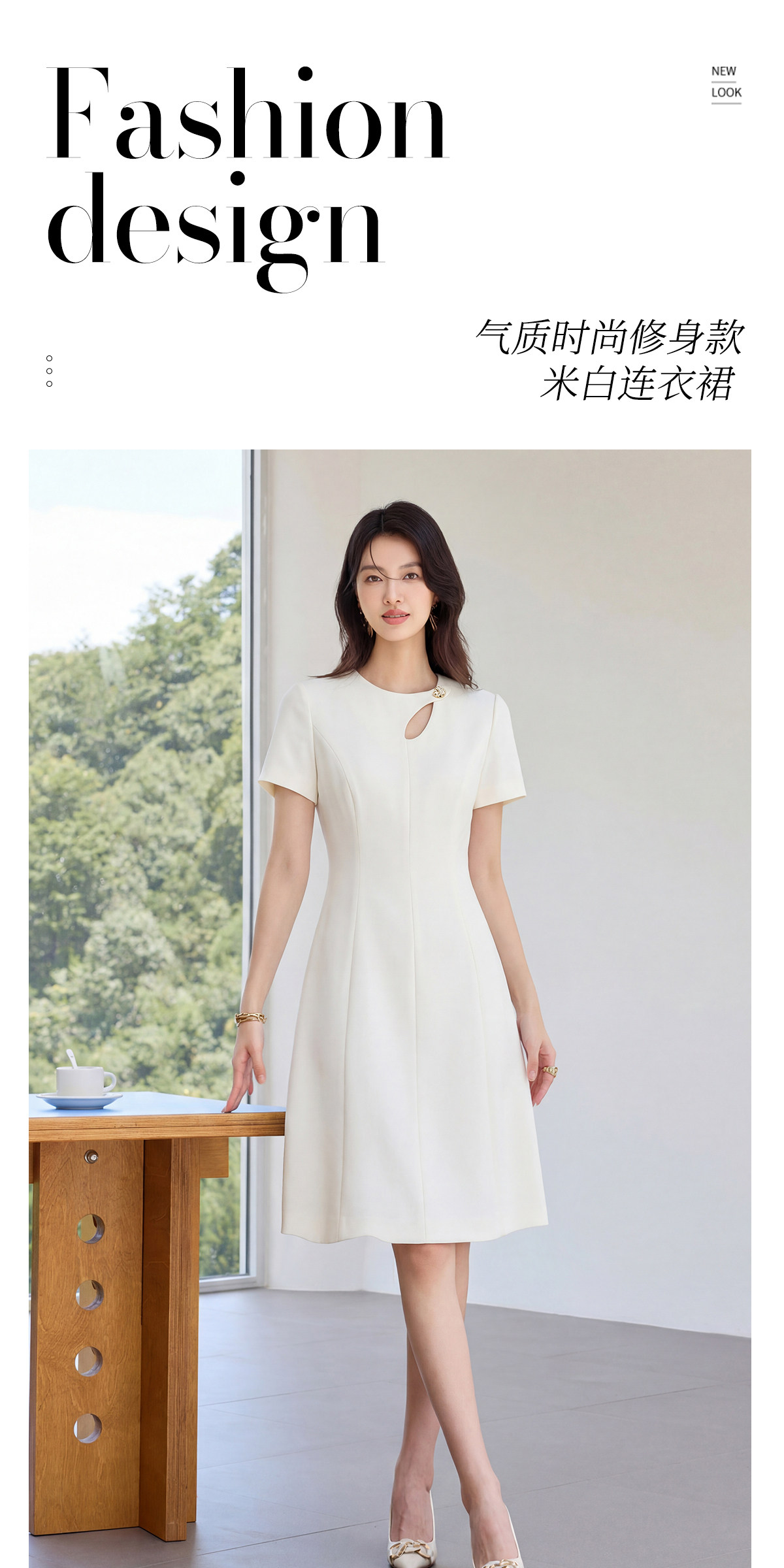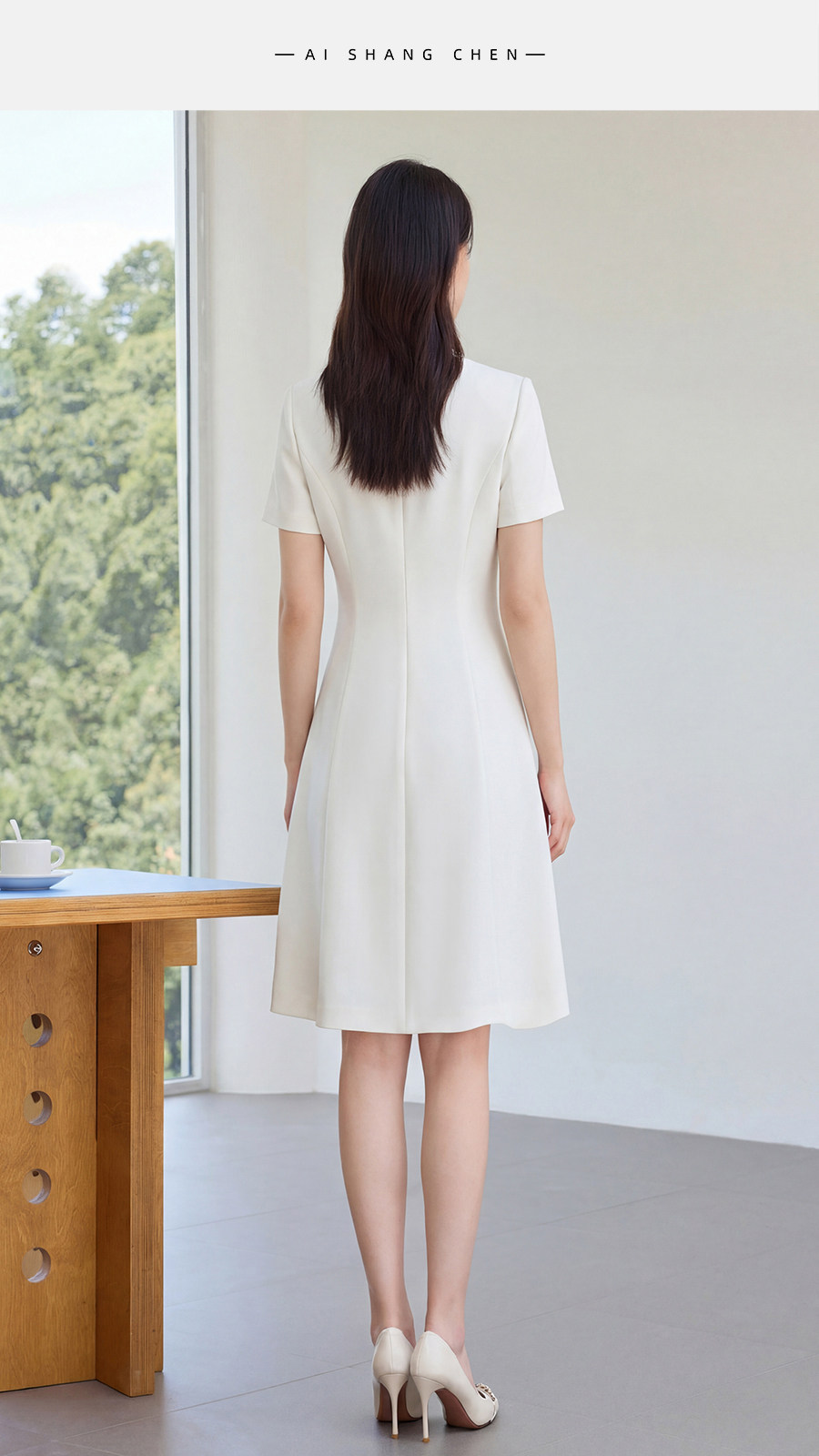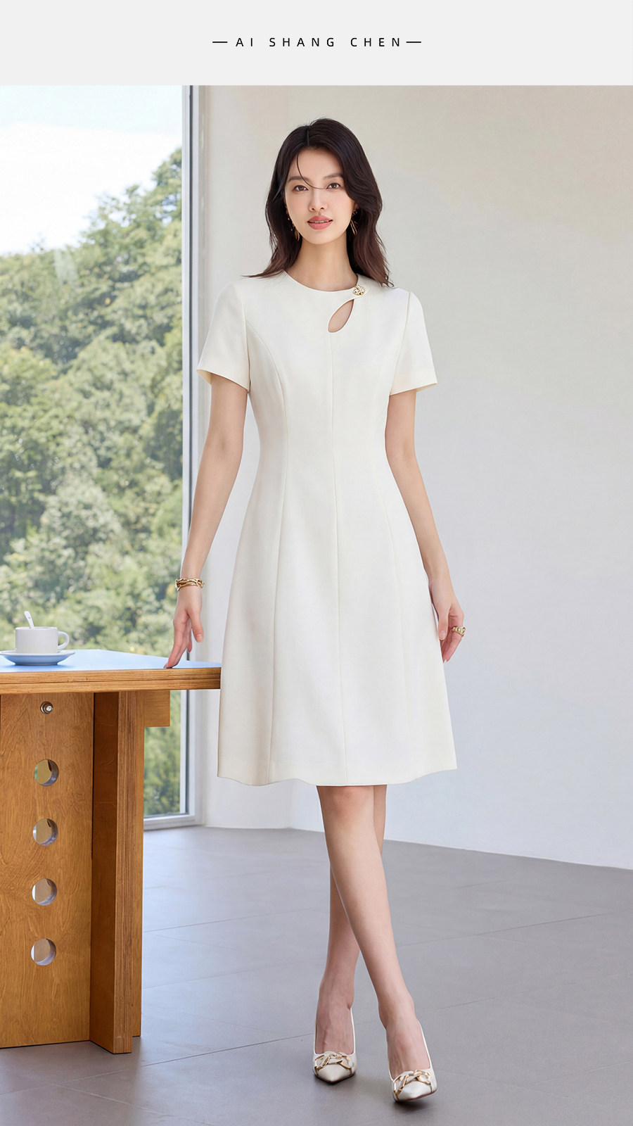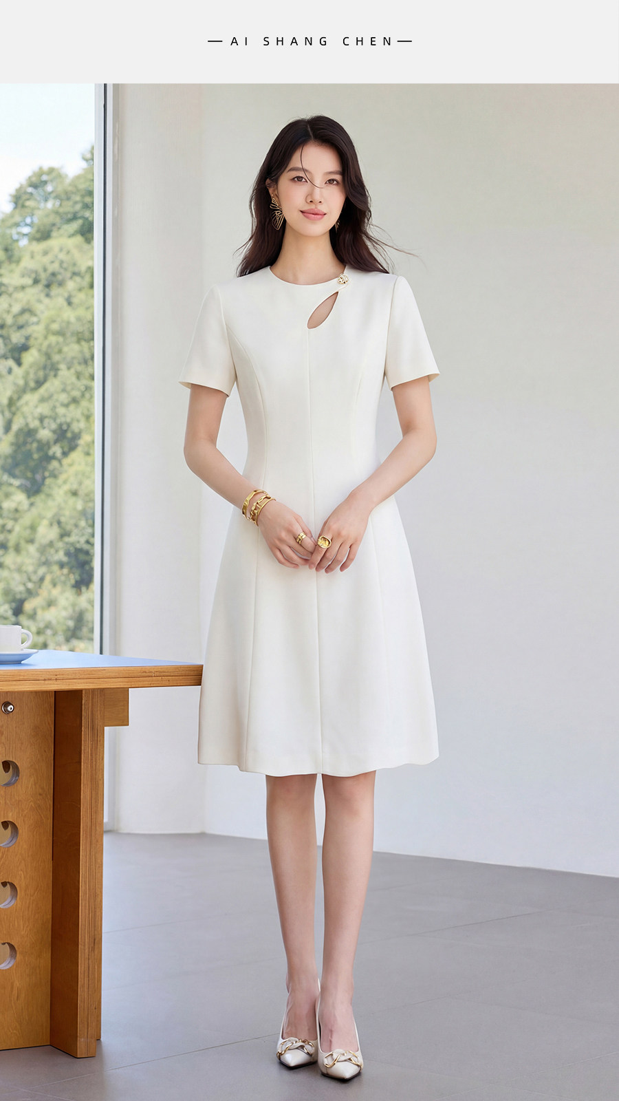 艾尚臣初恋小白裙极简风连衣裙女夏短袖A字裙轻奢质感显瘦气质裙