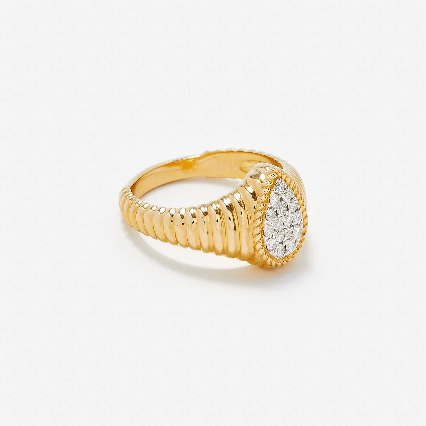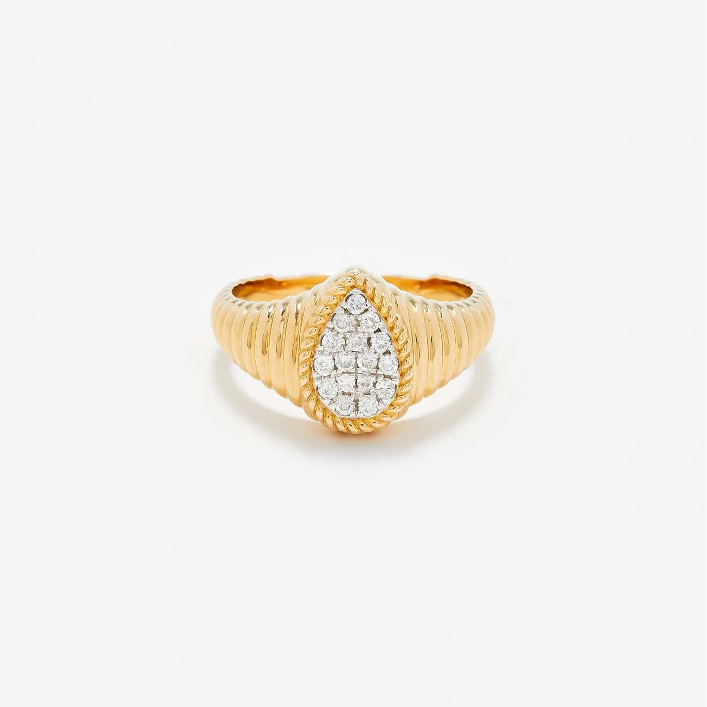 订购10周到|Yvonne Leon-CHEVALIERE POIRE BERLINGOT-9K黄金 梨形灰钻 男士 印章 戒指[法国设计师]