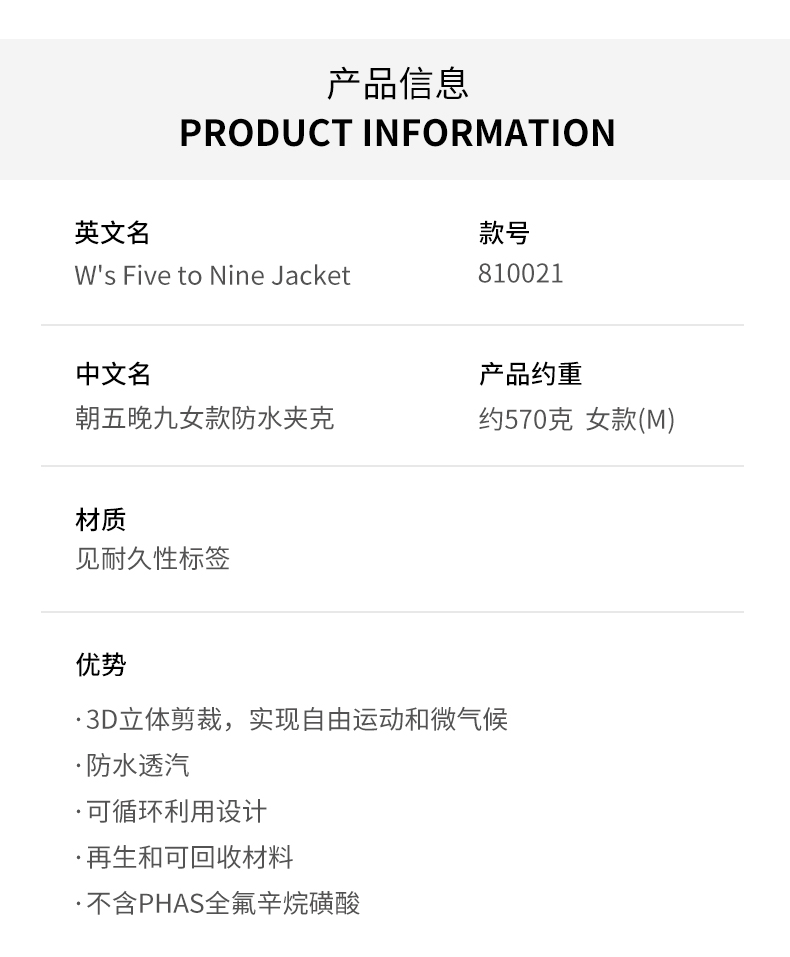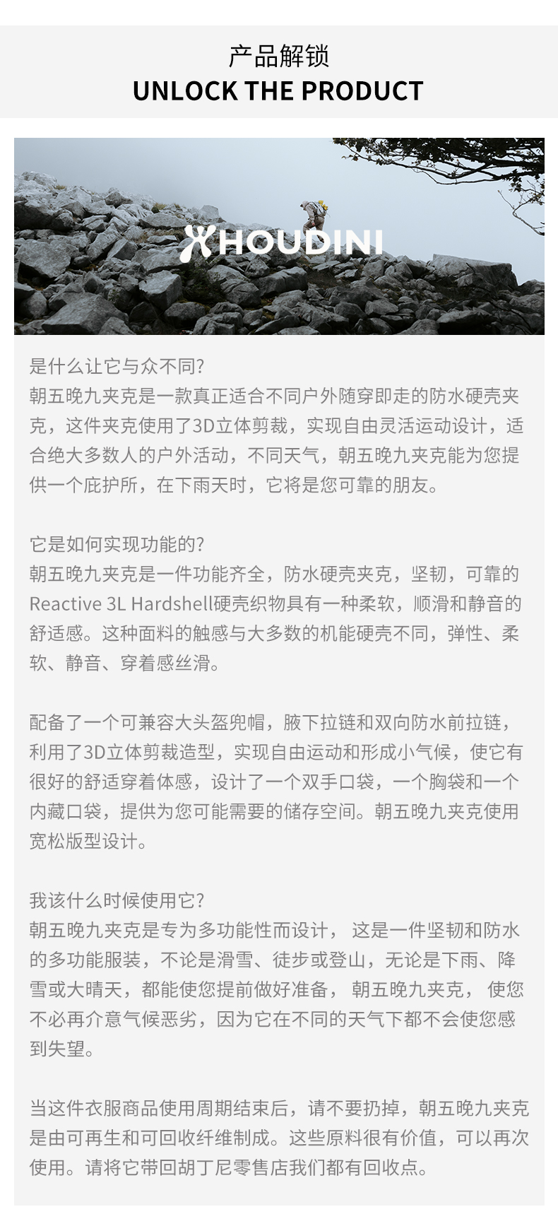 HOUDINI胡丁尼 Five toNine朝五晚九女户外春季防风防水单层冲锋衣810021