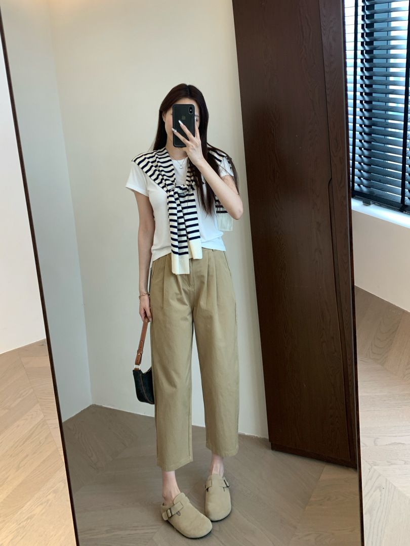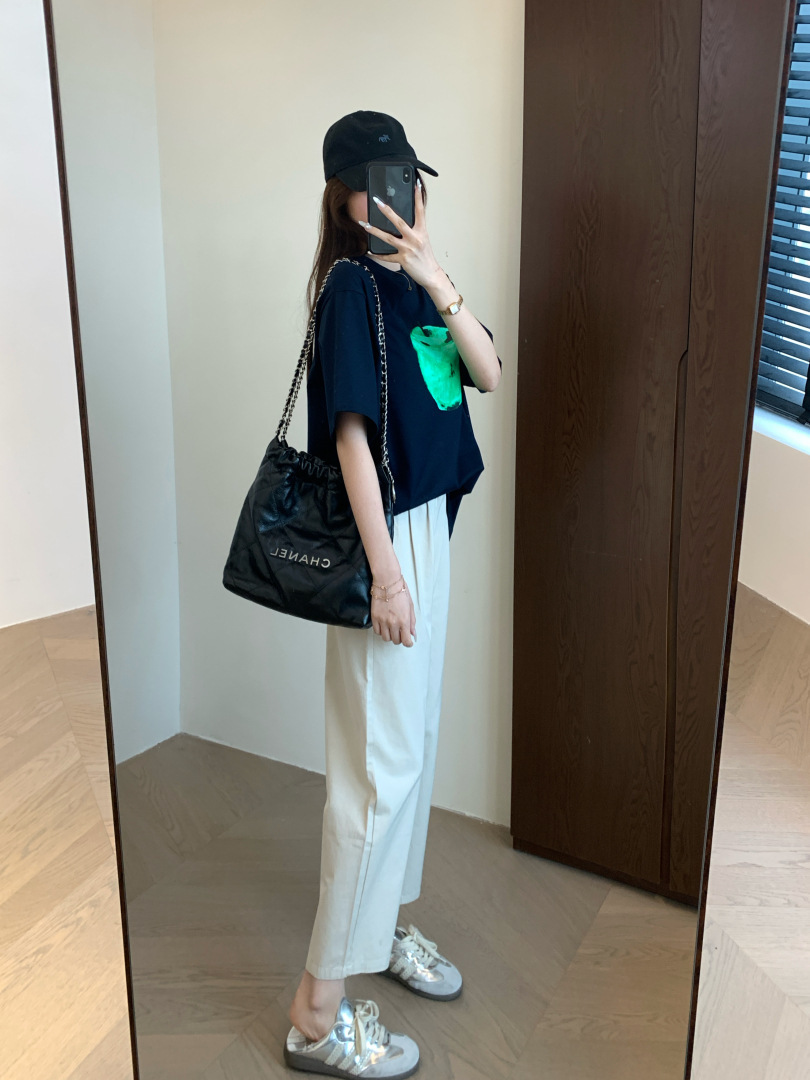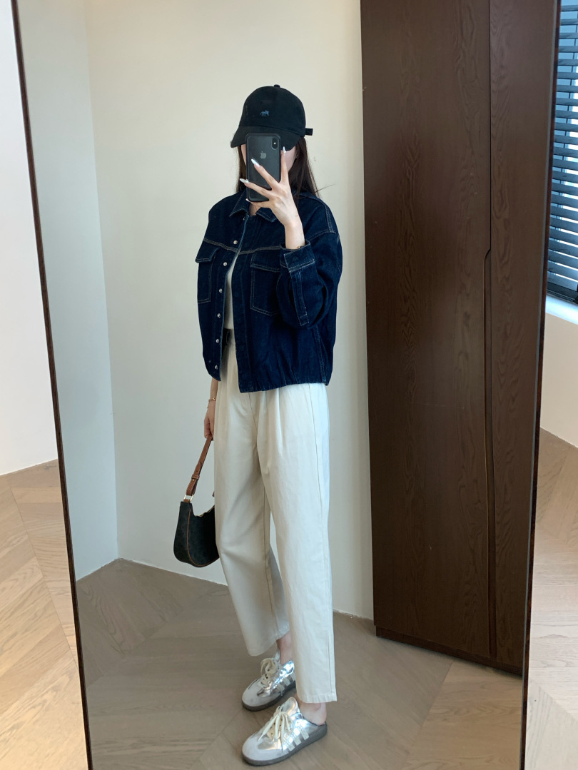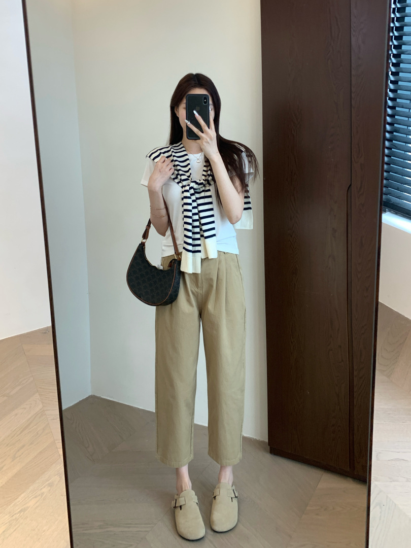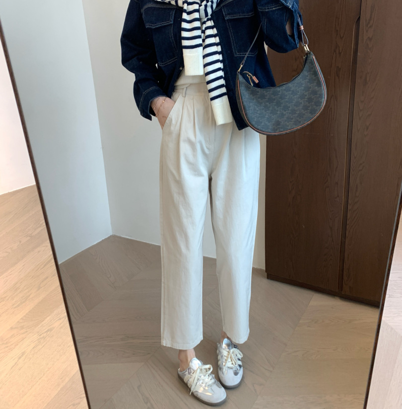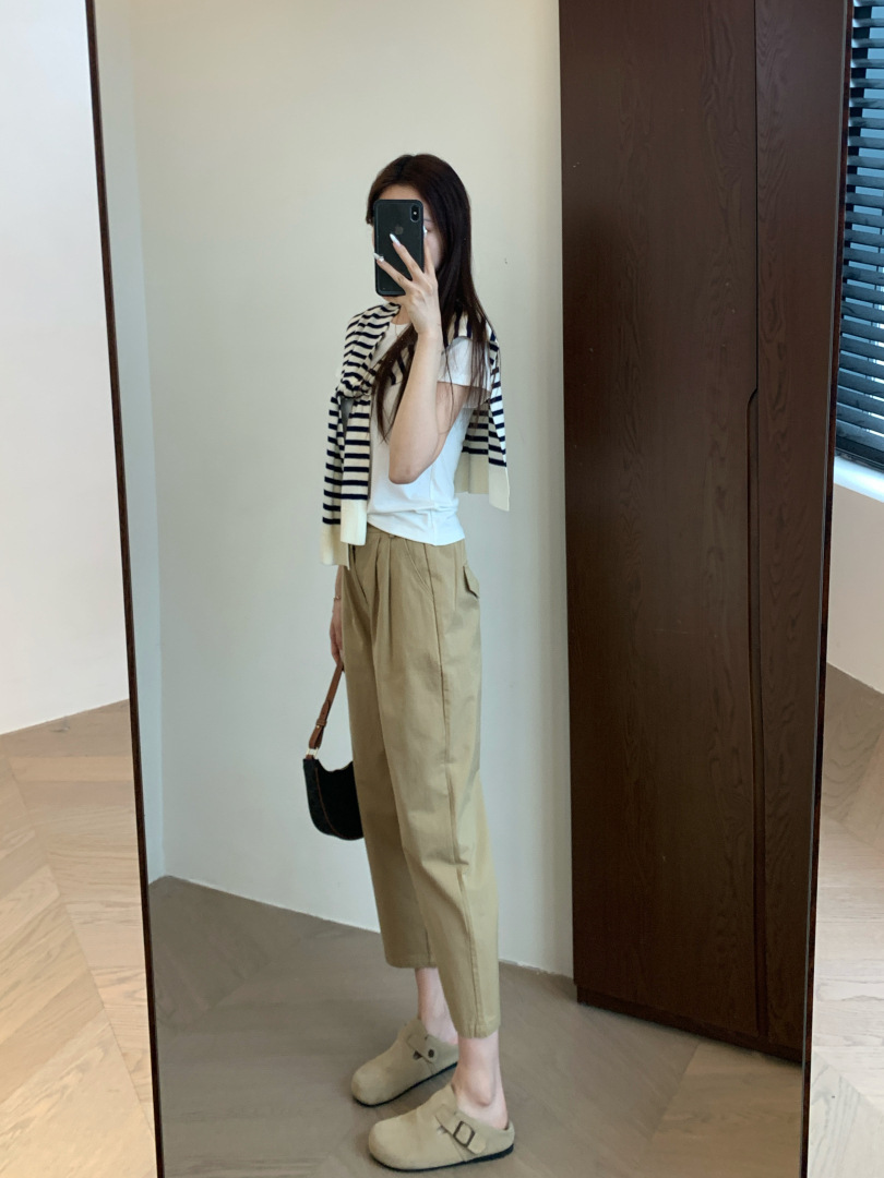 裤身挺缝线沿口袋顺直而下,视觉上莄显腿细!!