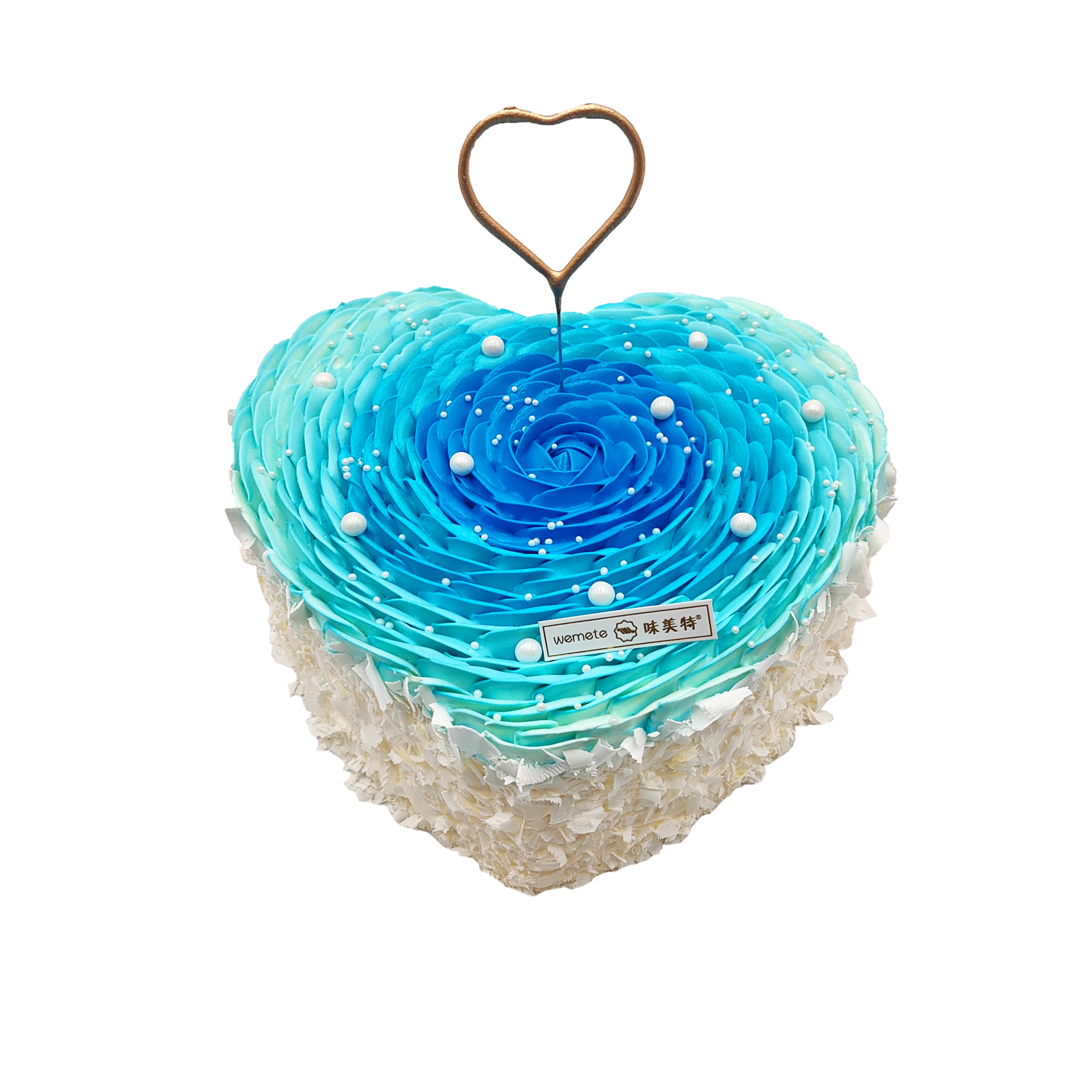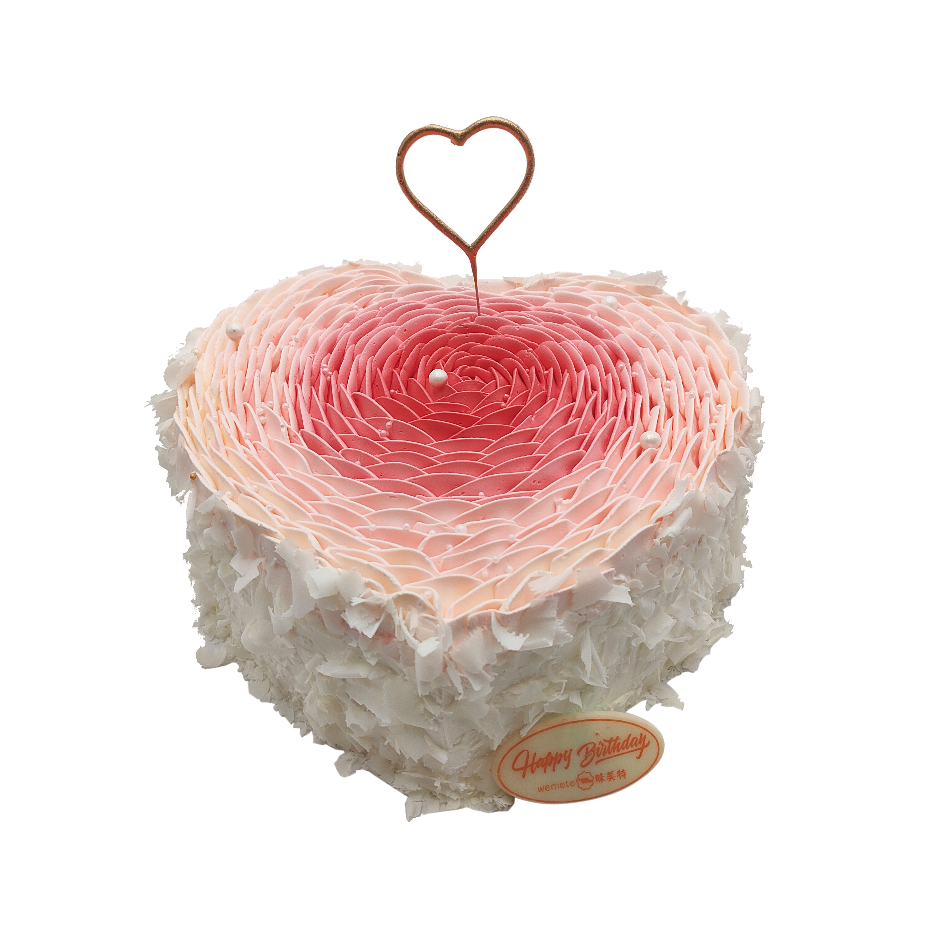 味美特“心形蛋糕”超高颜值蛋糕-周边是白色巧克力碎-爱心蜡烛是可以点燃的