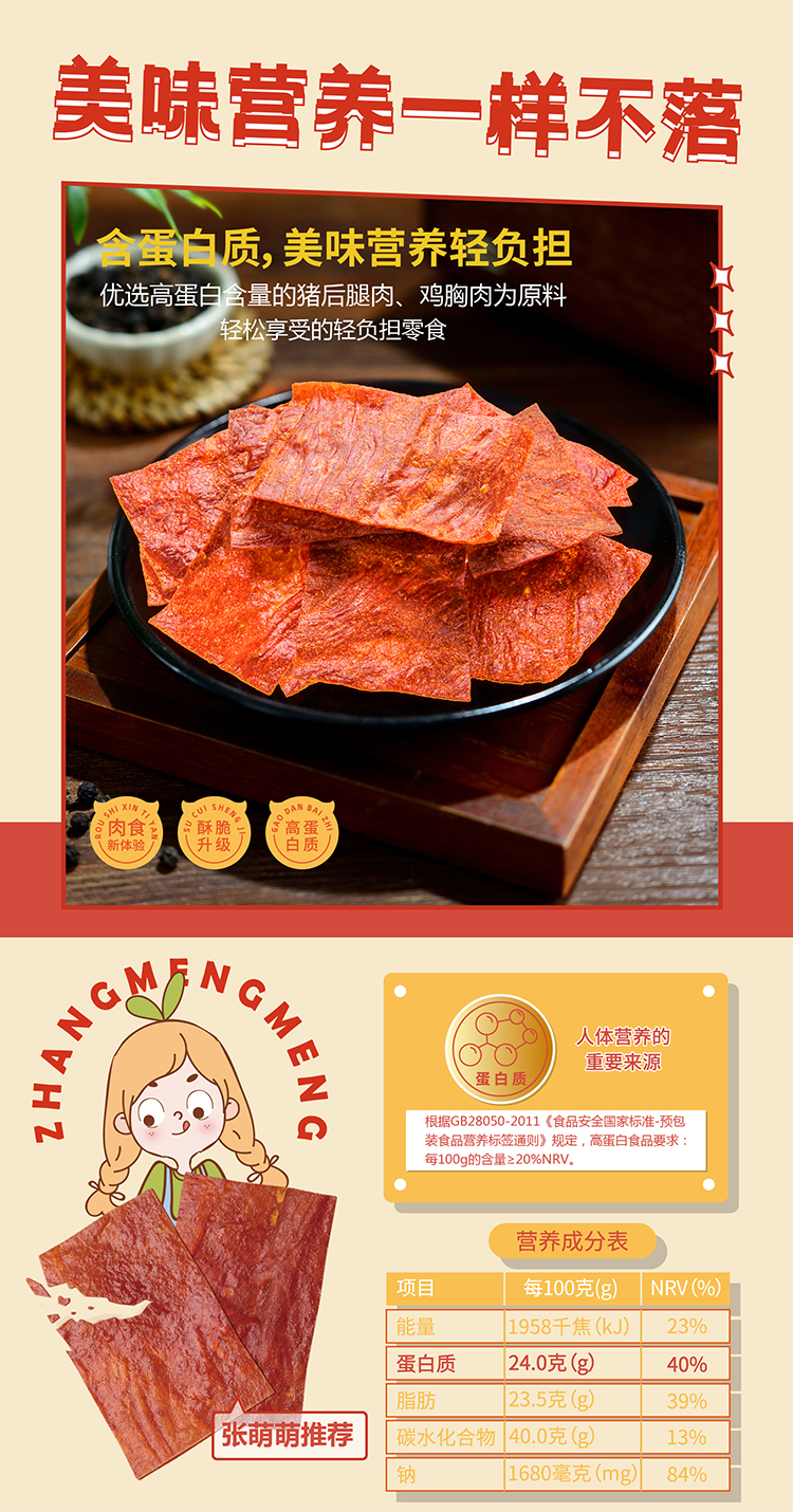 【休闲食品】唯新 张萌萌 48g肉脯脆脆(原味)*3袋装