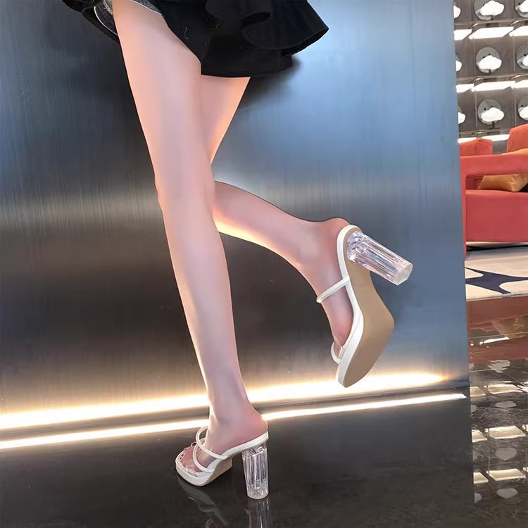 【新款透明凉鞋一字水晶凉鞋】高跟鞋女外穿2025年夏季新款,做工精细脚感舒适,透明凉鞋一字带粗跟水晶跟凉拖鞋女鞋QQ