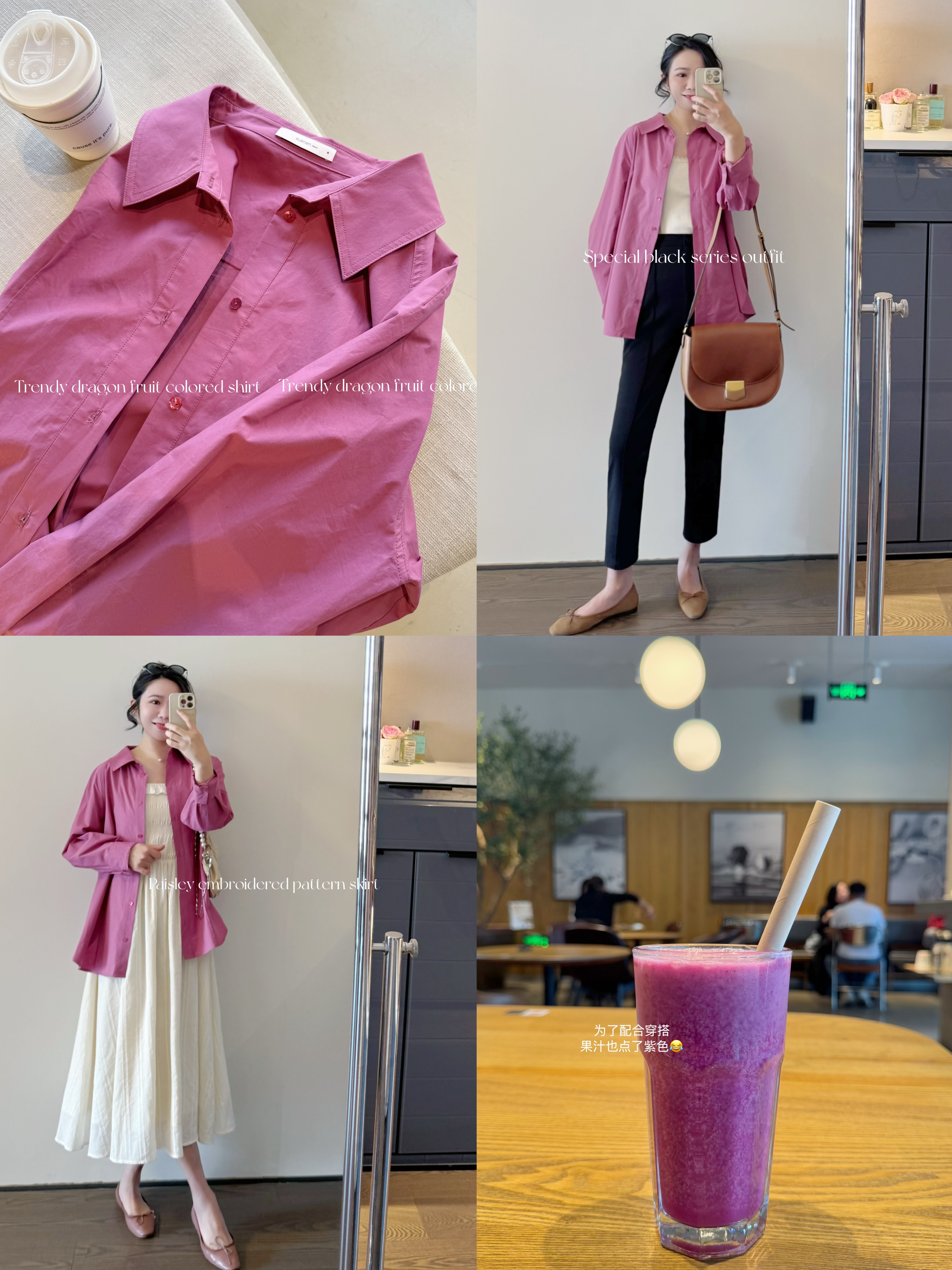 洗涤建议:可机洗,初次洗涤请分开单独洗涤。 注意事项:略微宽松的样式,通常是敞开穿着,建议按照平时尺码选择,才会有最佳休闲时髦感效果;实物更接近细节图标准的火龙果色,很显白! |