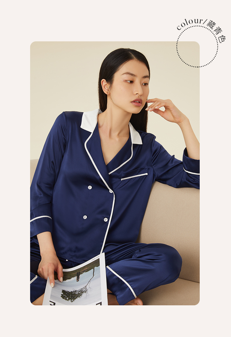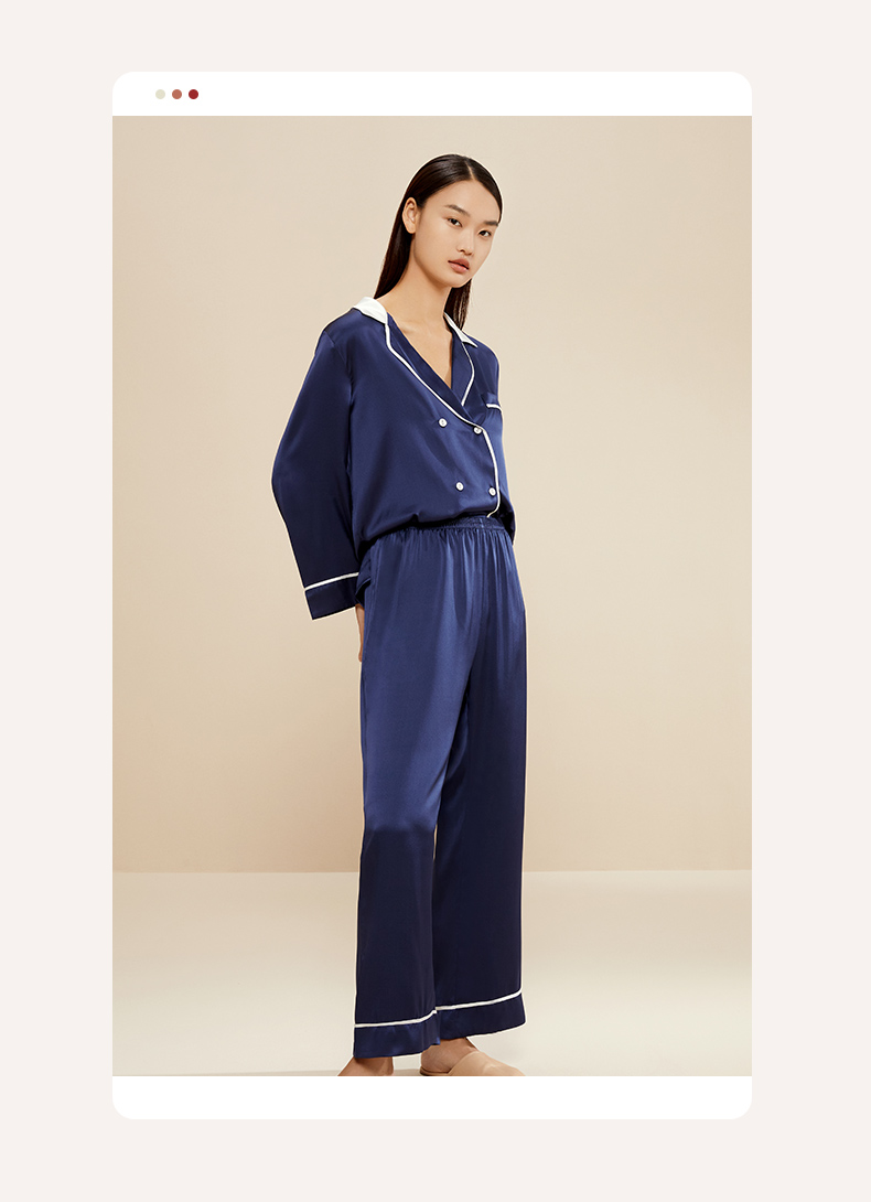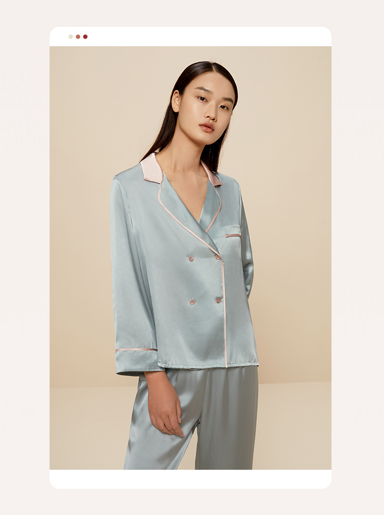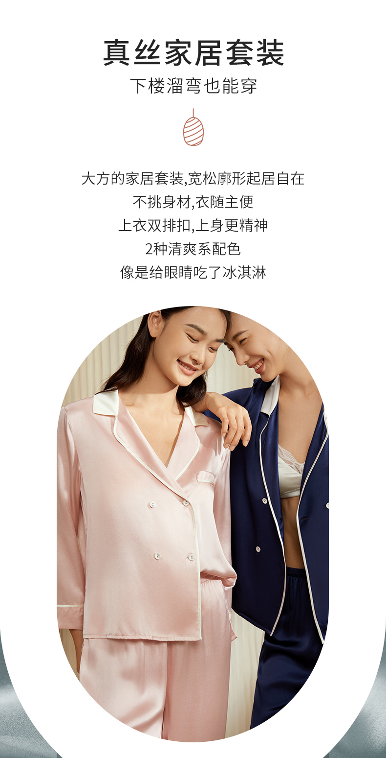 金三塔真丝睡衣女100%桑蚕丝双排扣凉感可外穿家居服套装 YSFCA218