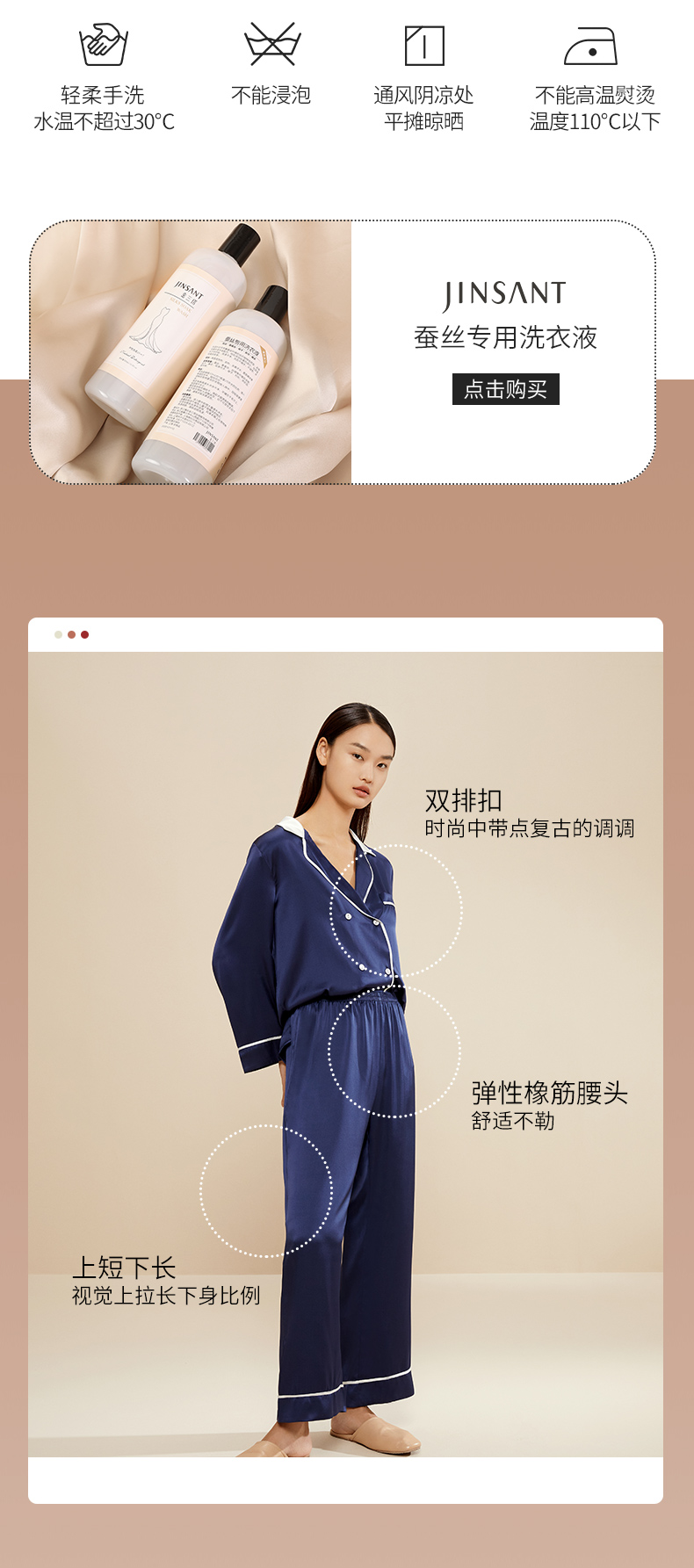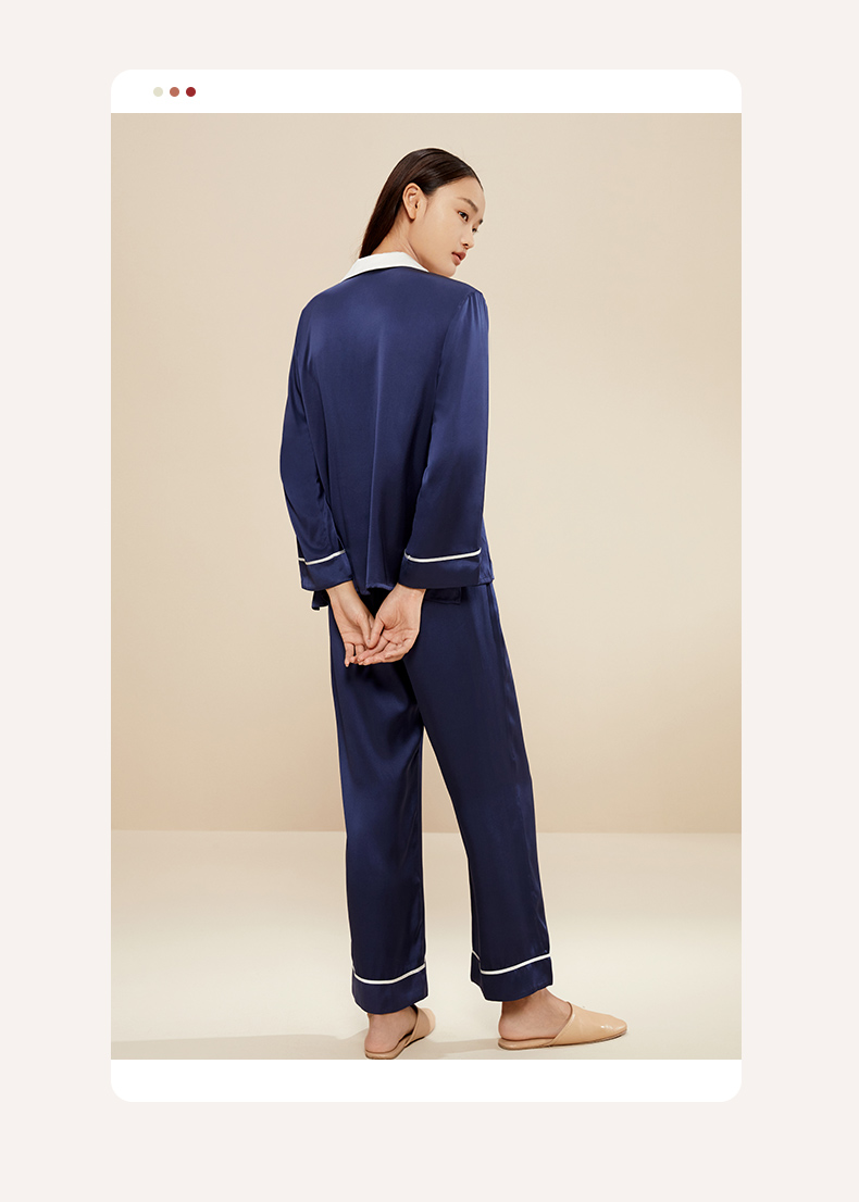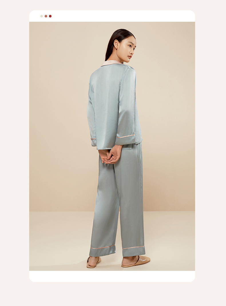 金三塔真丝睡衣女100%桑蚕丝双排扣凉感可外穿家居服套装 YSFCA218