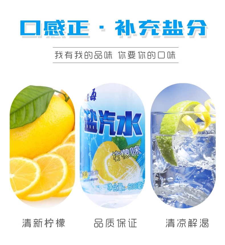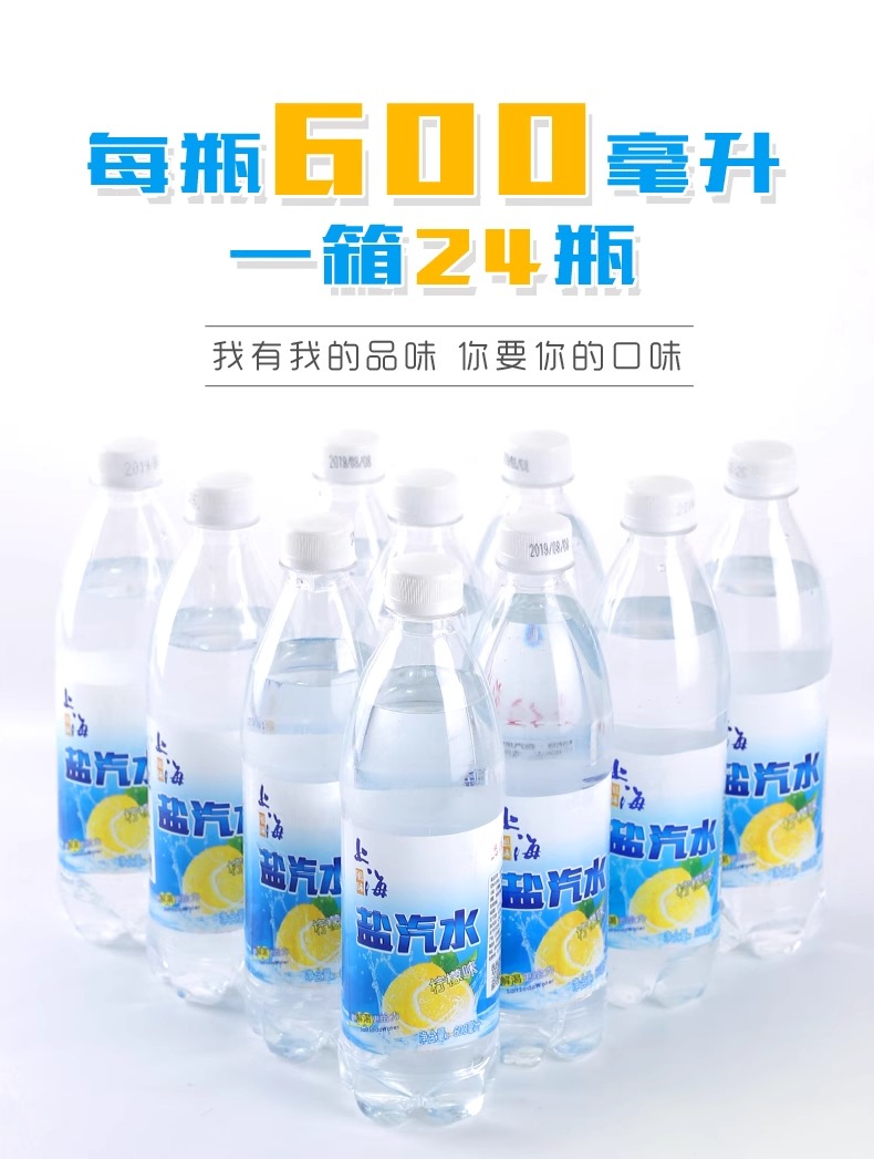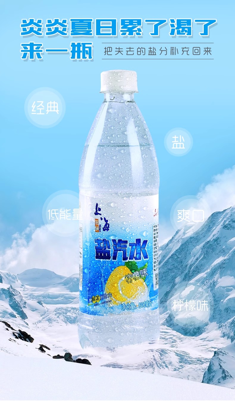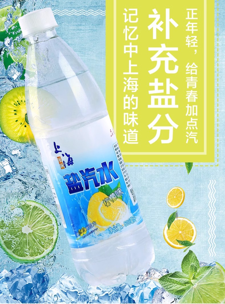 上海风味盐汽水600ml*24瓶柠檬味汽水碳酸饮料0糖0脂夏季饮料补充盐份整箱批发