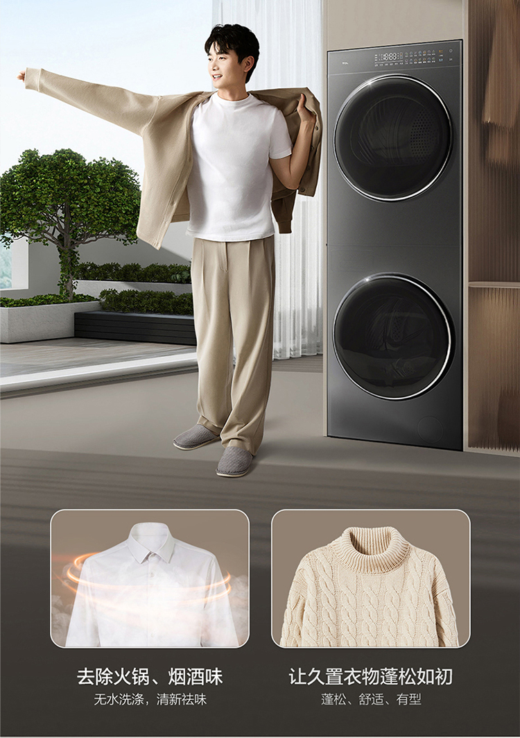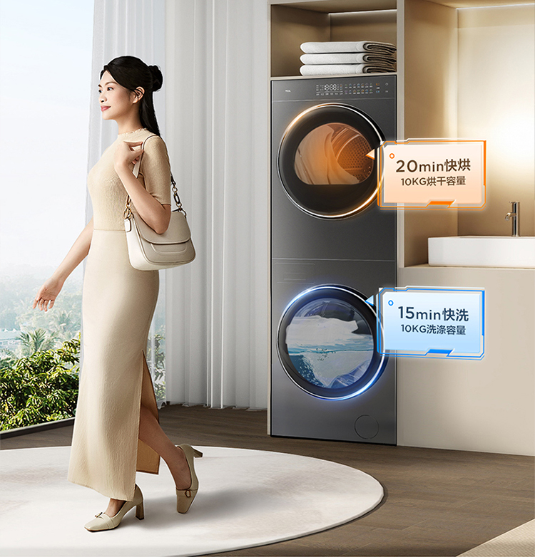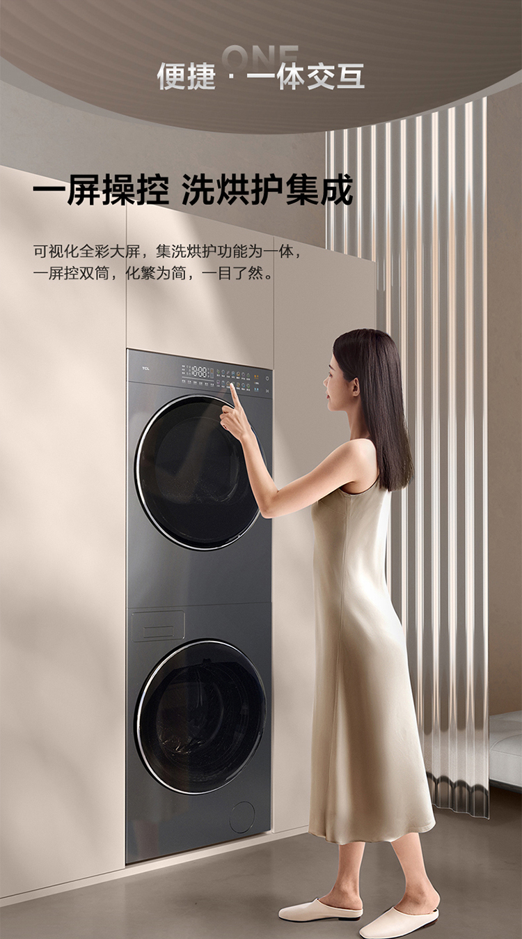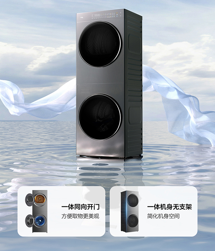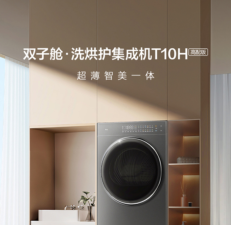 【TCL洗衣机】TCL 双子舱·洗烘护集成机T10H 一体洗烘套装 智能投放 1.15洗净比 GH200T10H-BIS