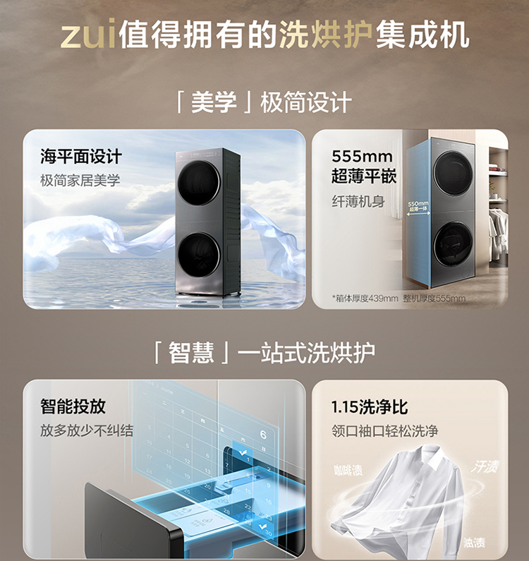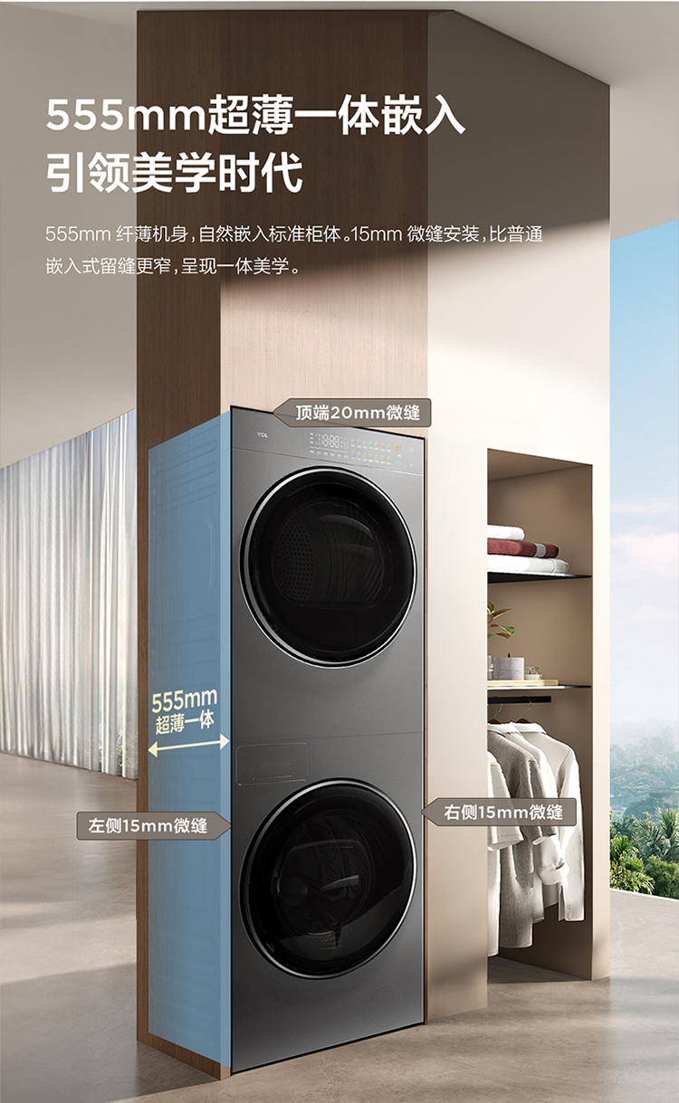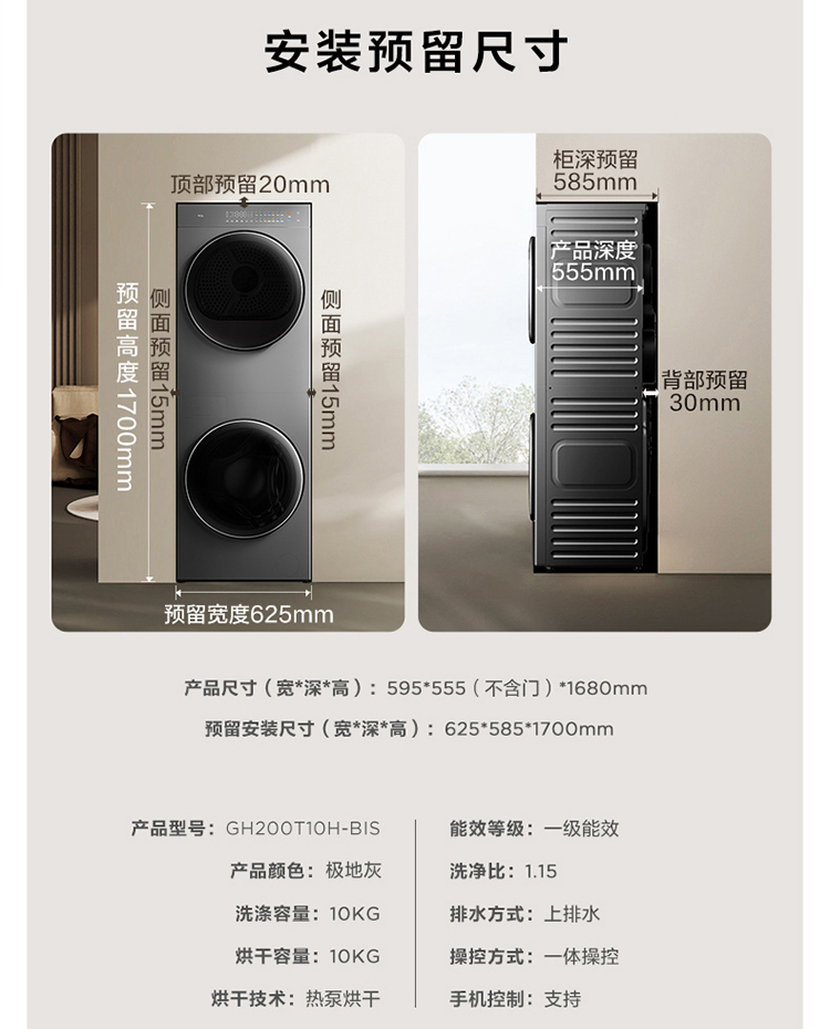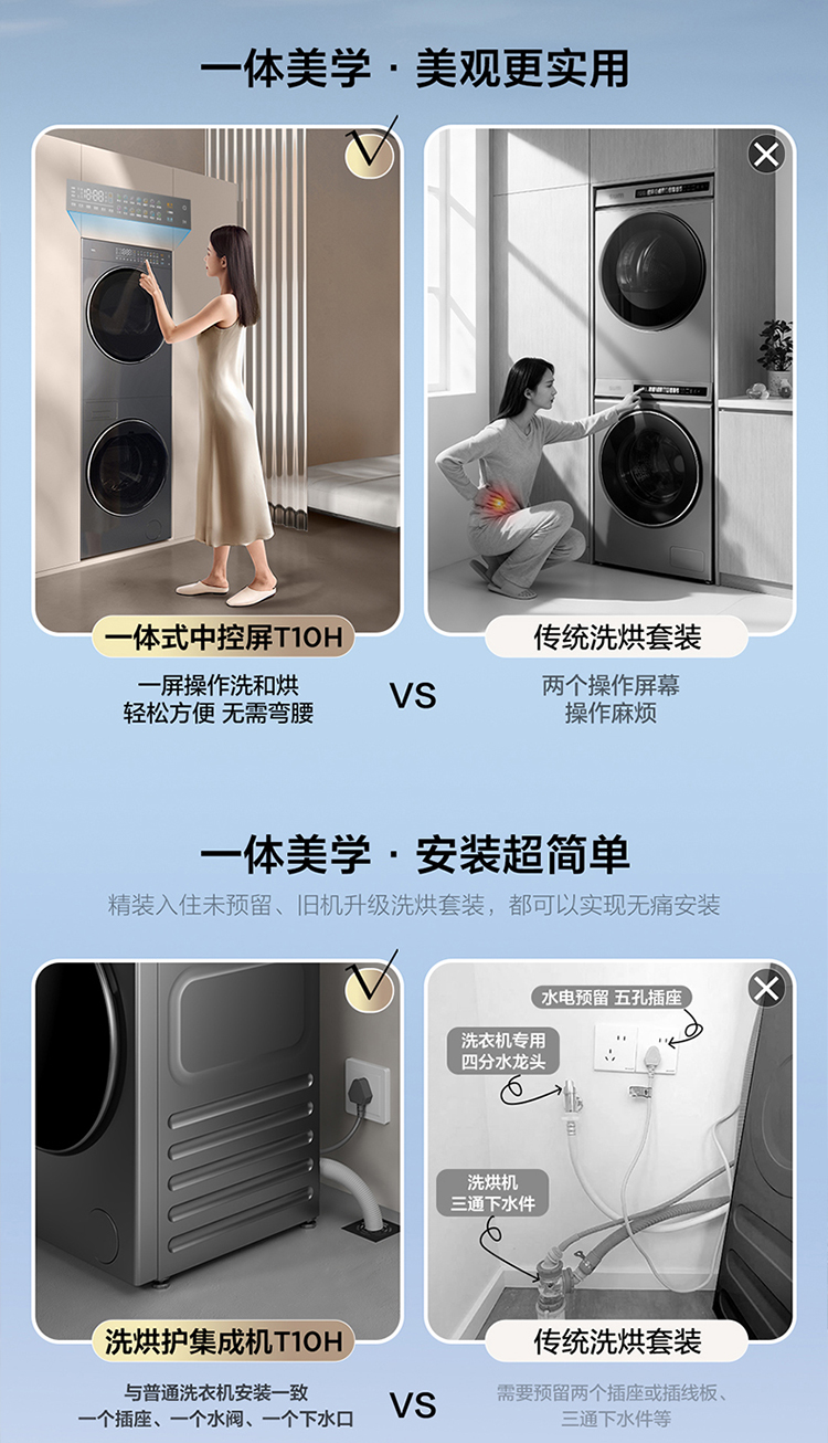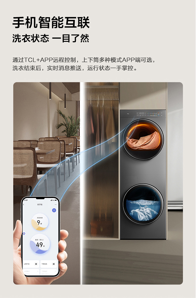 【TCL洗衣机】TCL 双子舱·洗烘护集成机T10H 一体洗烘套装 智能投放 1.15洗净比 GH200T10H-BIS