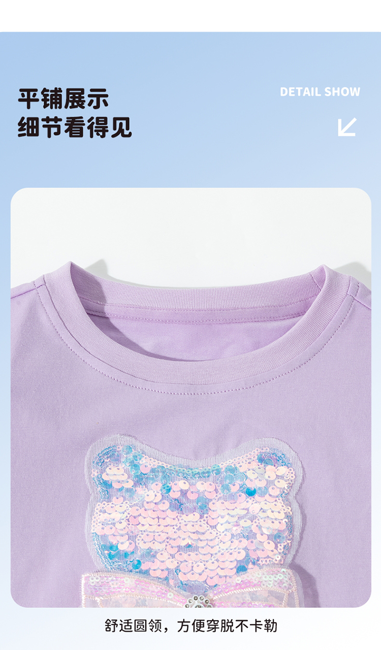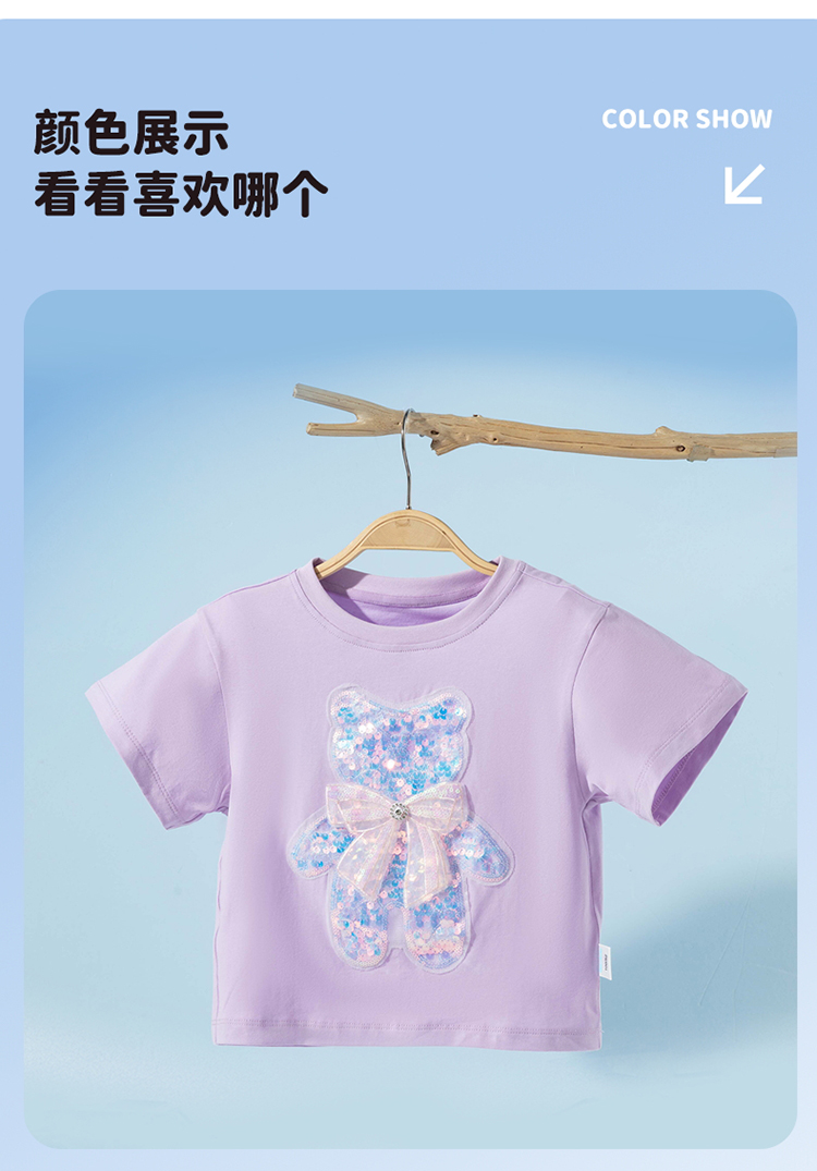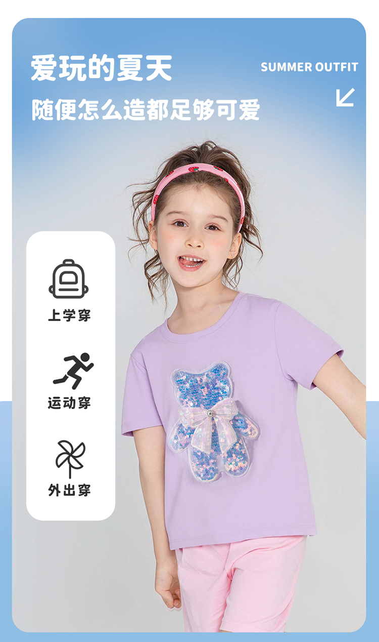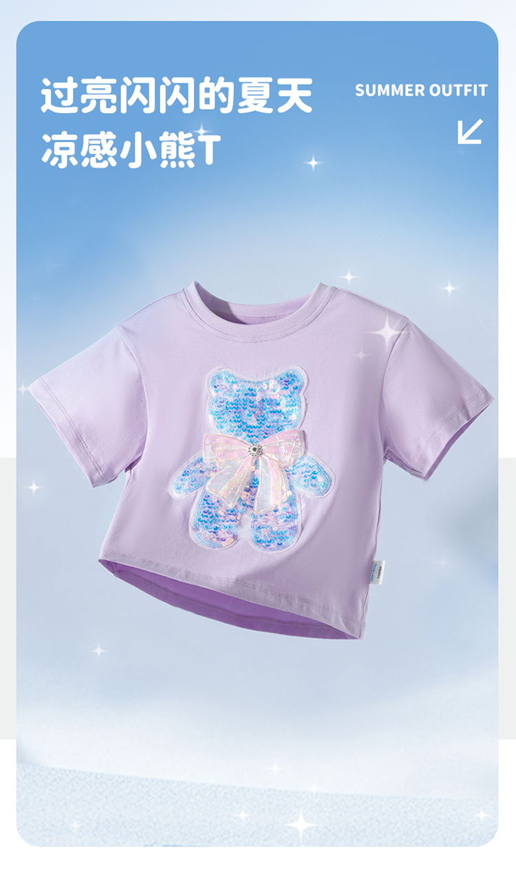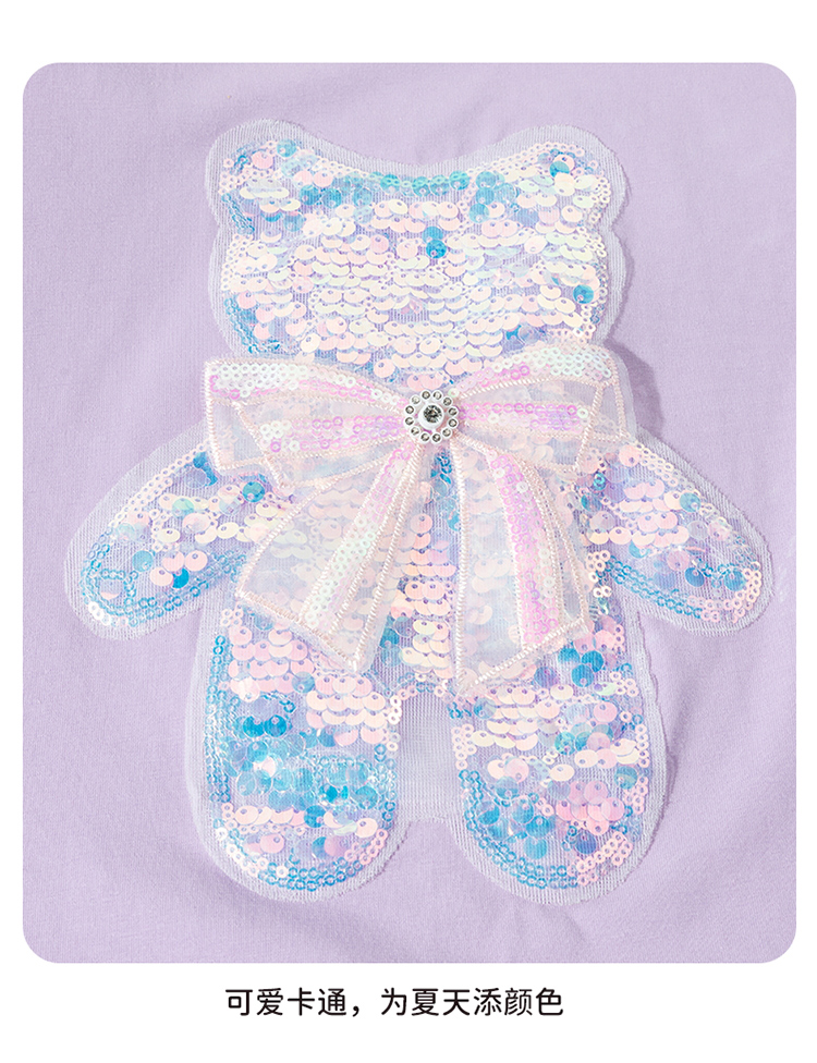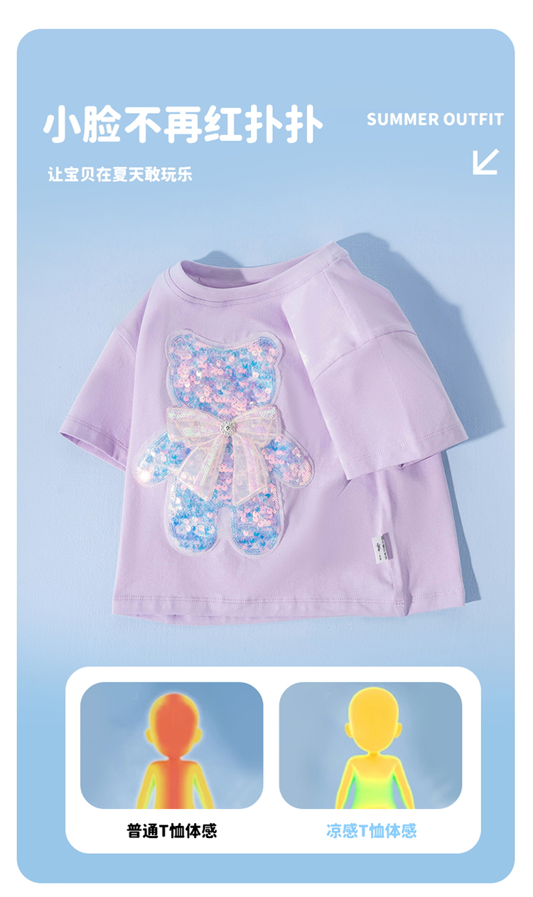 【亮片小熊凉感套装】2025夏季新款女童冰感短袖T恤宽松短裤套装
