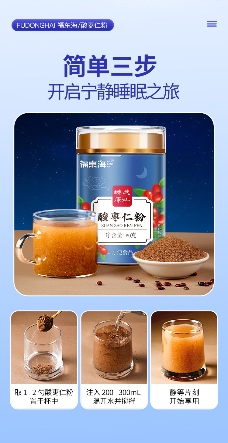 福东海 酸枣仁粉80克【纯原料打粉】超细粉 打粉非炒制熟茶汤膏丸原料