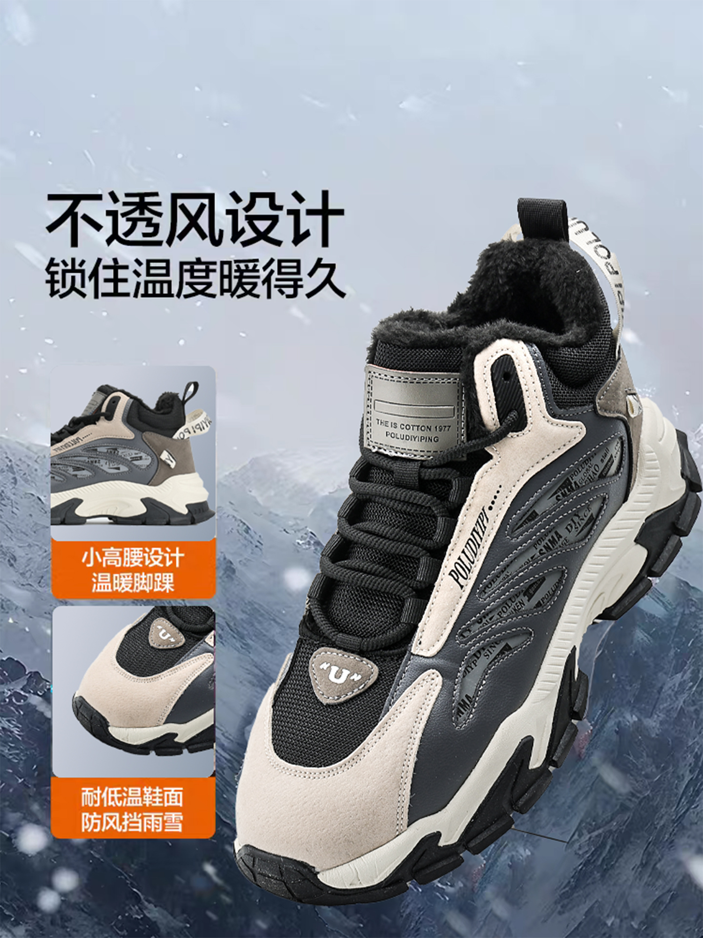 【专属】冬季2025新款时尚户外登山战靴加绒保暖运动雪地靴男高帮棉鞋