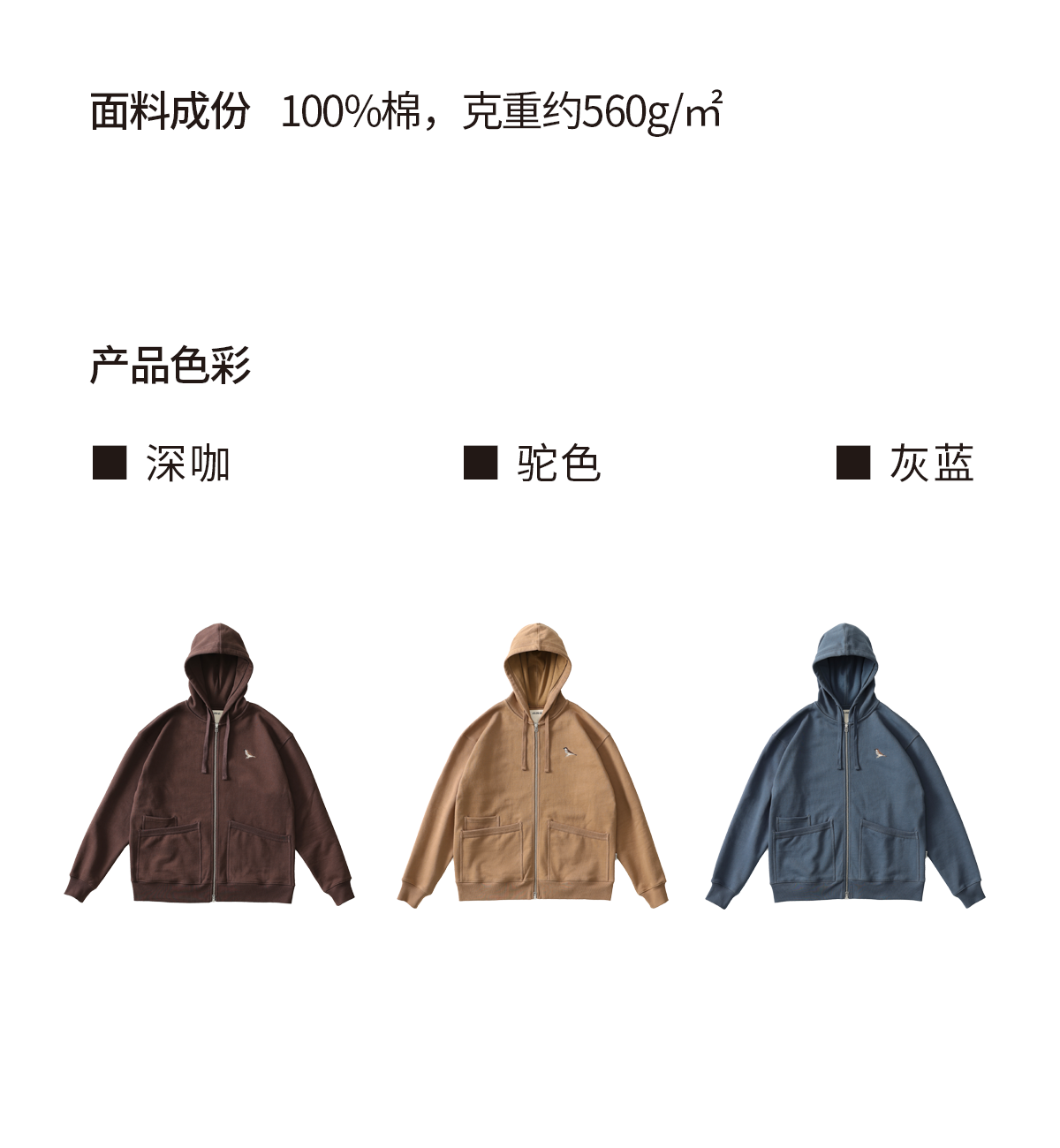 吃茶去chichaqu24秋冬重磅带帽拉链卫衣复古加厚全棉帽衫男女百搭