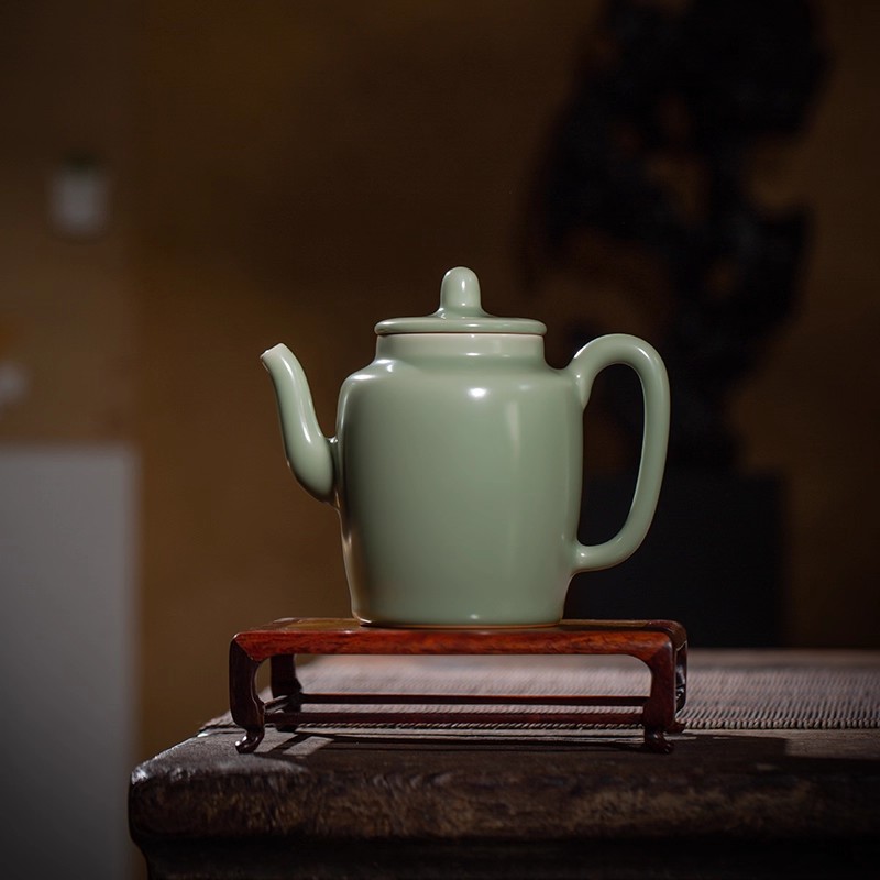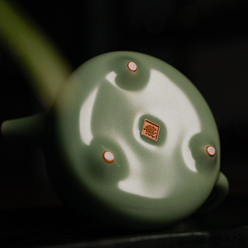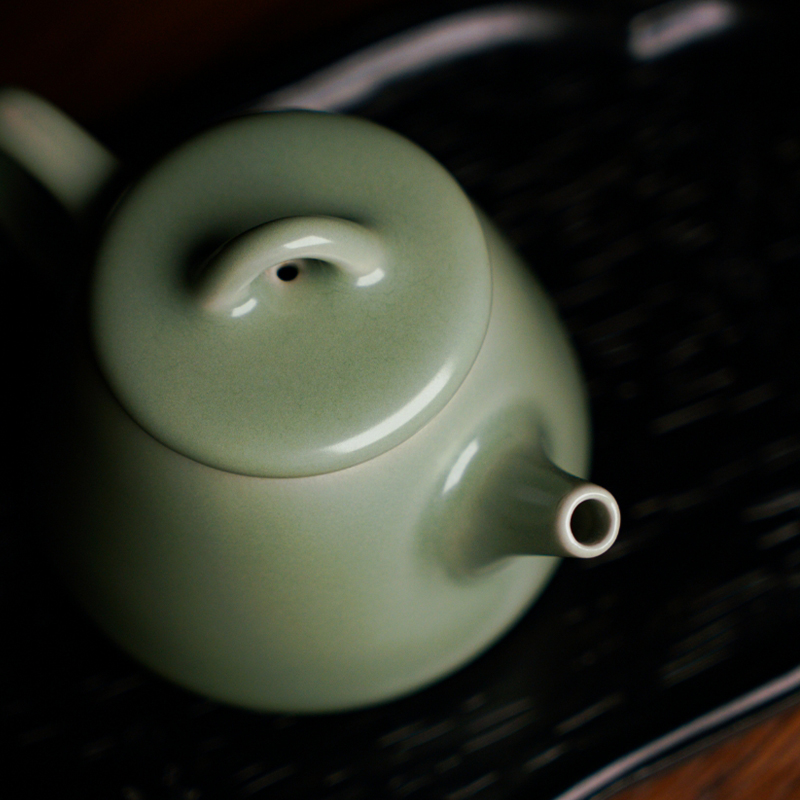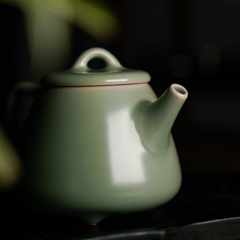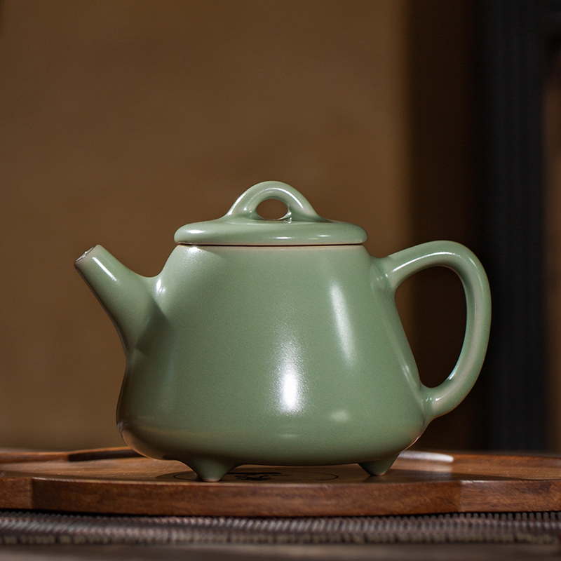 问鼎哥窑豆青高石瓢壶 吉时壶