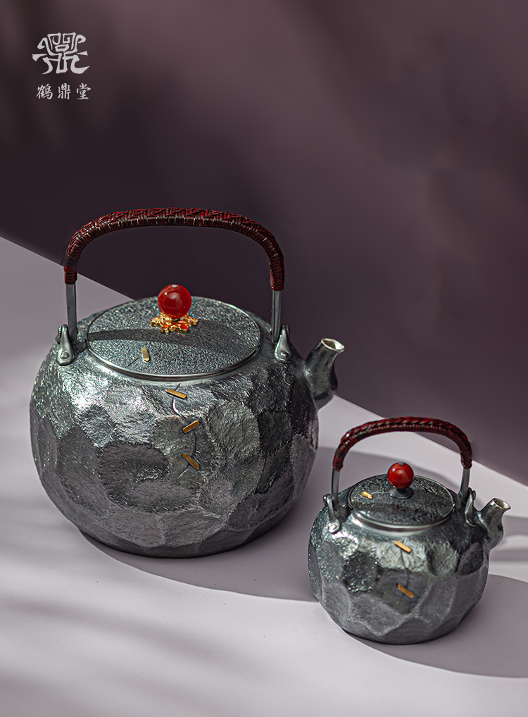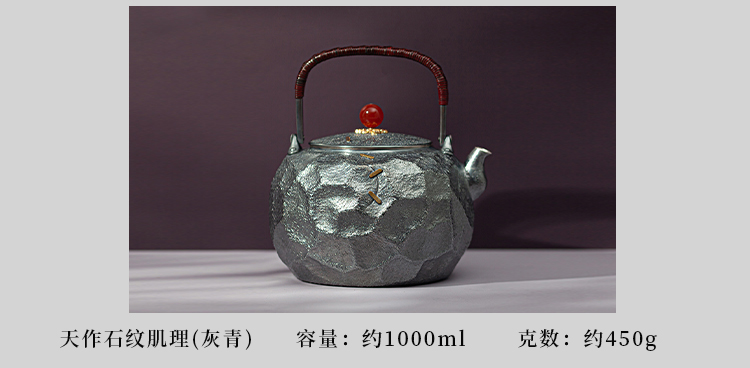 鹤鼎堂银壶于野系列天作石纹肌理汤沸(灰青)(缺货)