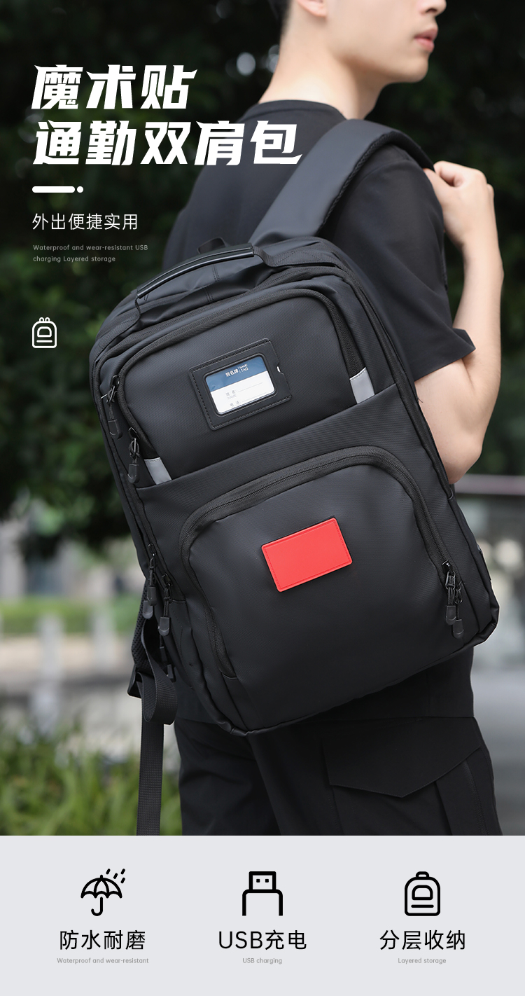 【USB魔术贴通勤双肩包】大容量通勤勤务收纳包 防泼水多功能手提牛津布背包