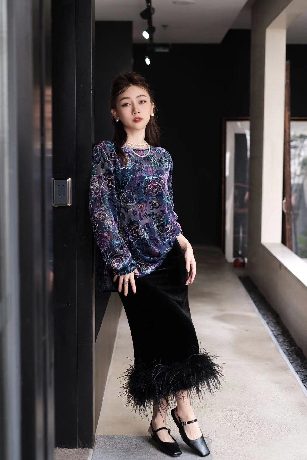 盛唐牡丹 |丝绒抽象玫瑰女上衣
