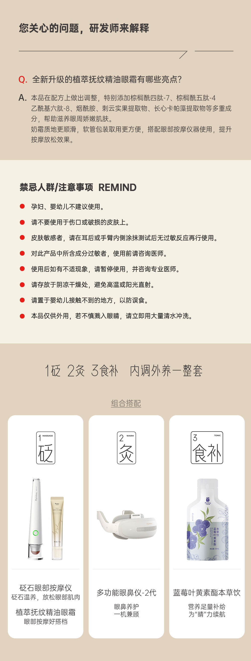 【艾益生·植萃抚纹精油眼霜】搭配眼部按摩仪、蒸汽眼罩使用