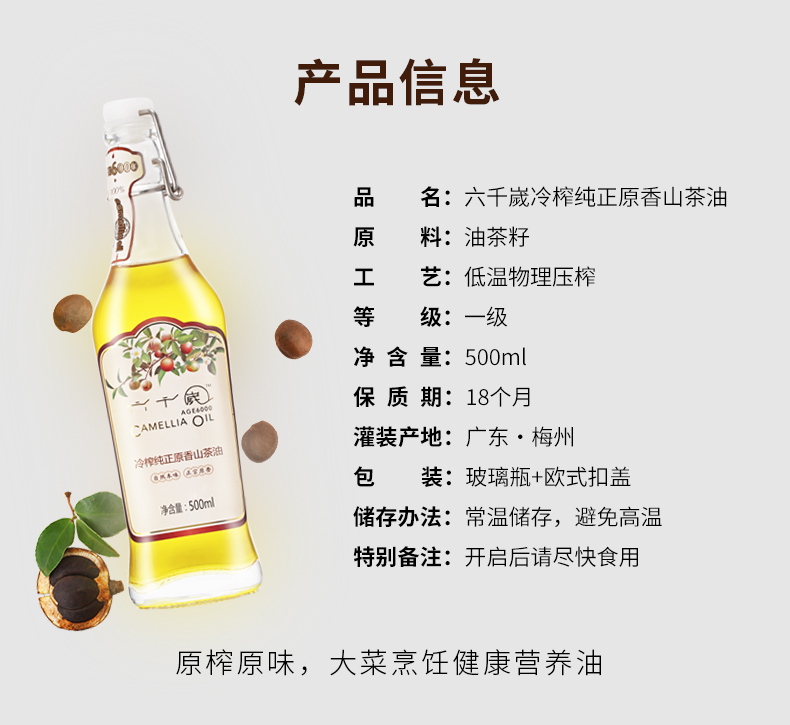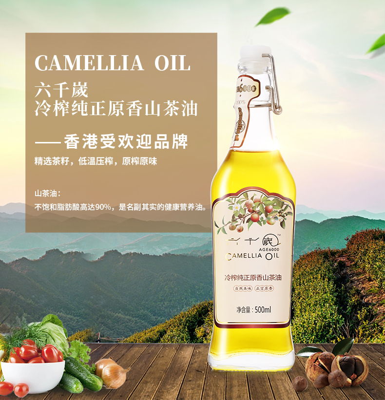 香港最受欢迎品牌 孕婴-坐月必备营养油 六千嵗冷榨纯正原香山茶油 500ML