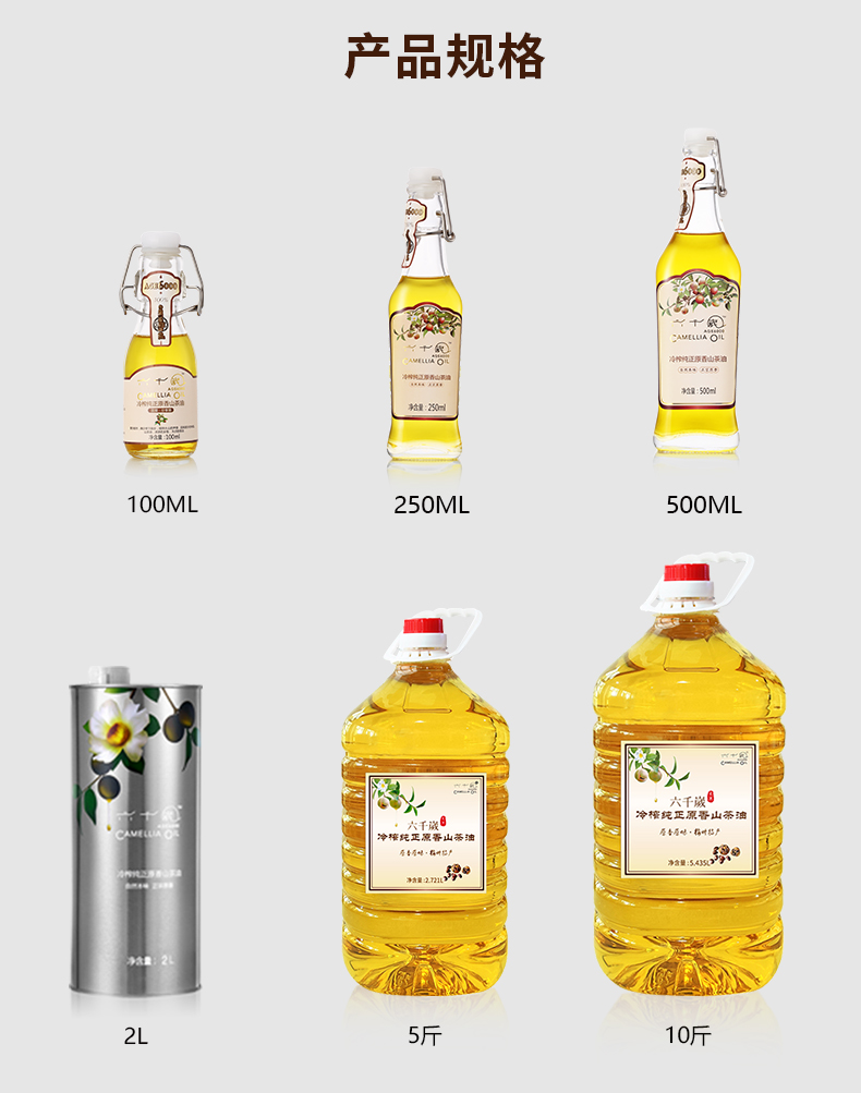 六千岁冷榨纯正原香山茶油 健康食用油茶籽油家庭装孕妇月子油 2.721L