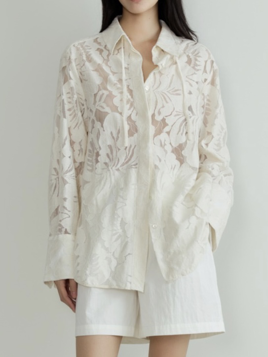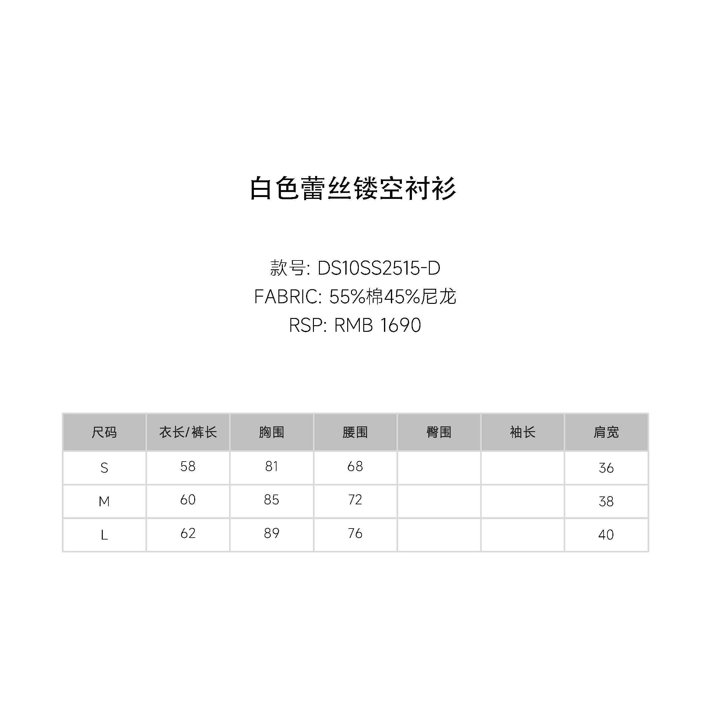DONSEE10|DS10SS2515-D 白色蕾丝镂空衬衫
