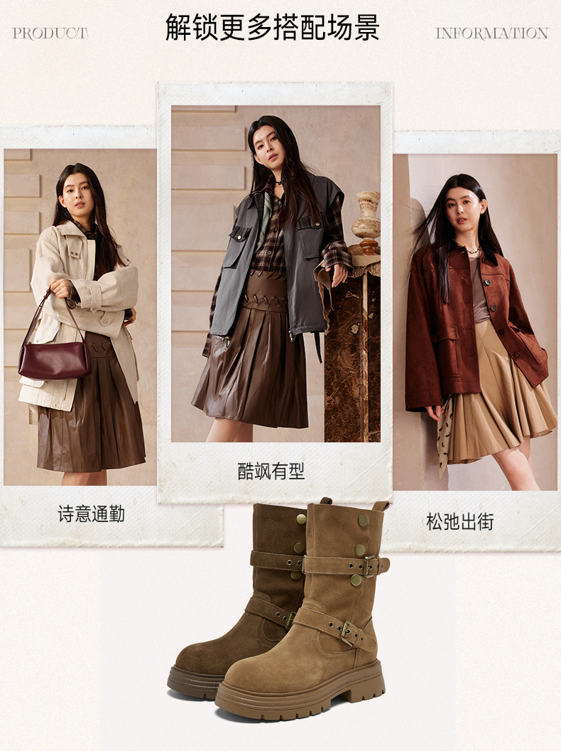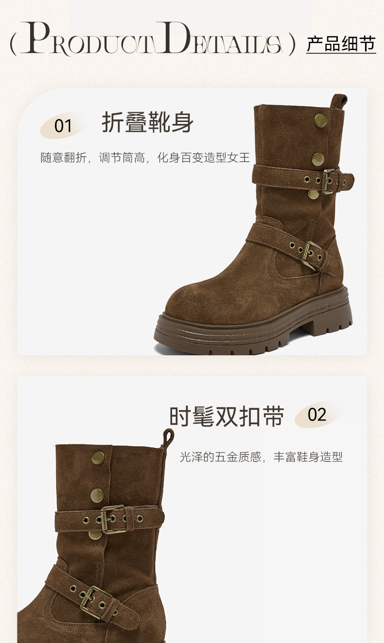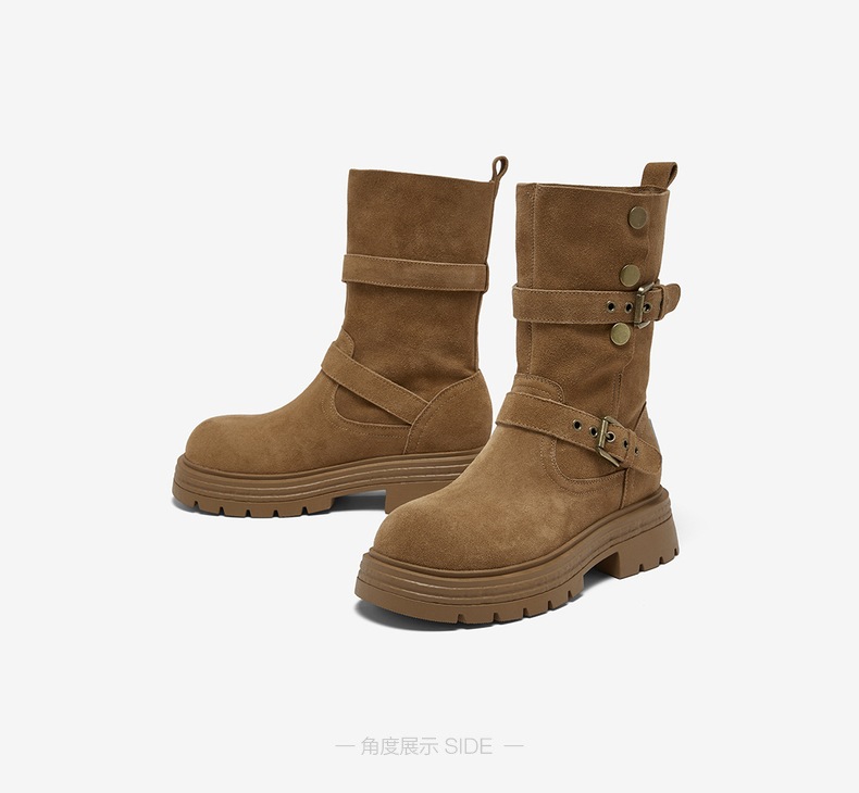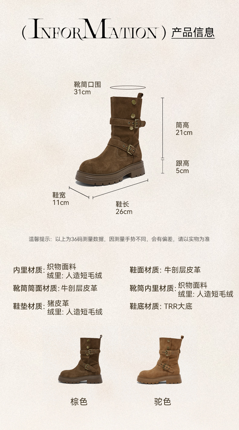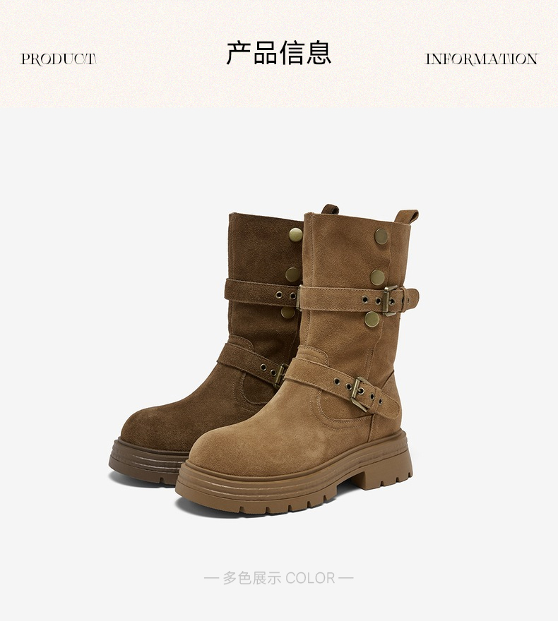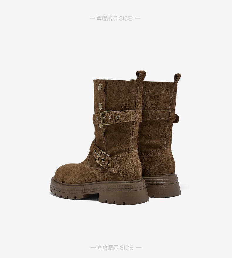 【云粉节】 BF楼百思图2025冬季新款真皮西部靴堆堆靴厚底女棕色短靴BP338DZ5吊牌价1159.现价539
