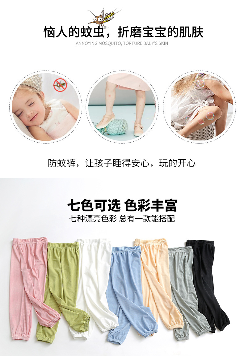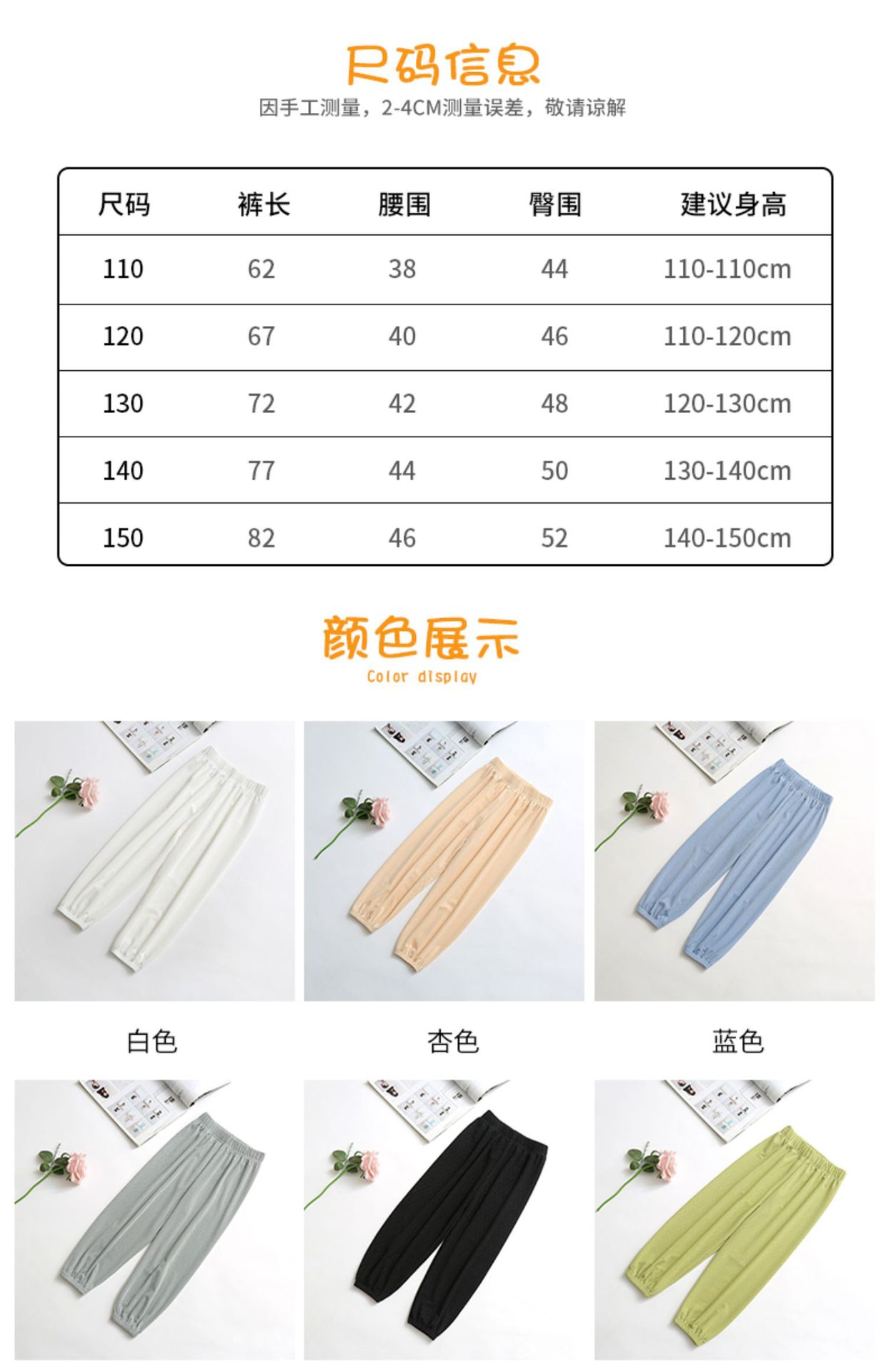 【儿童防蚊裤夏薄款女童冰丝休闲裤】男童宝宝灯笼裤中小童宽松束脚裤,防蚊裤让宝宝睡的更安心玩的更开心,收褶束口裤脚物理防蚊虫