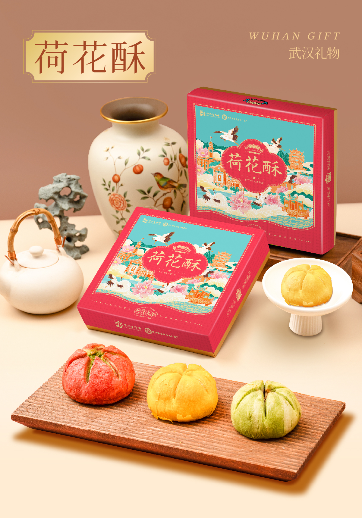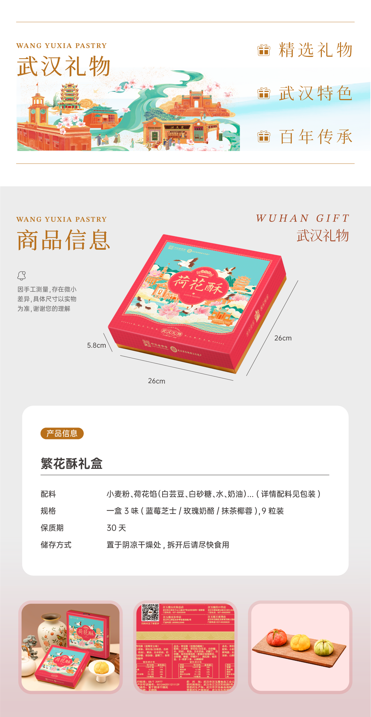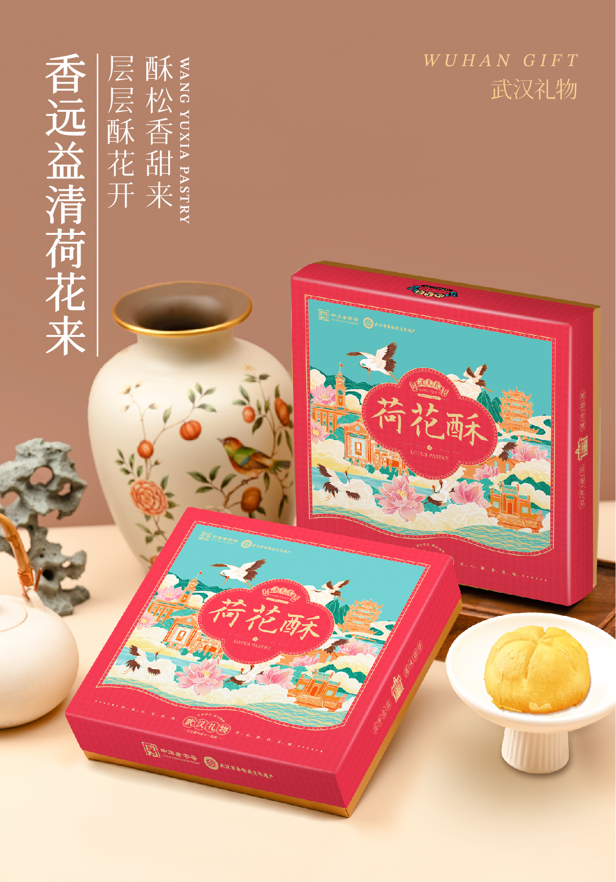 汪玉霞糕点礼盒武汉礼物伴手礼汉味糕点荷花酥礼盒配礼袋540克9枚