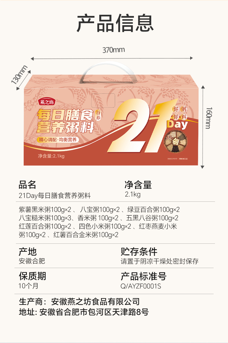 【商城专属】燕之坊21Day每日膳食营养粥料礼盒2.1kg 10种口味独立包装 早餐米糊配料送礼