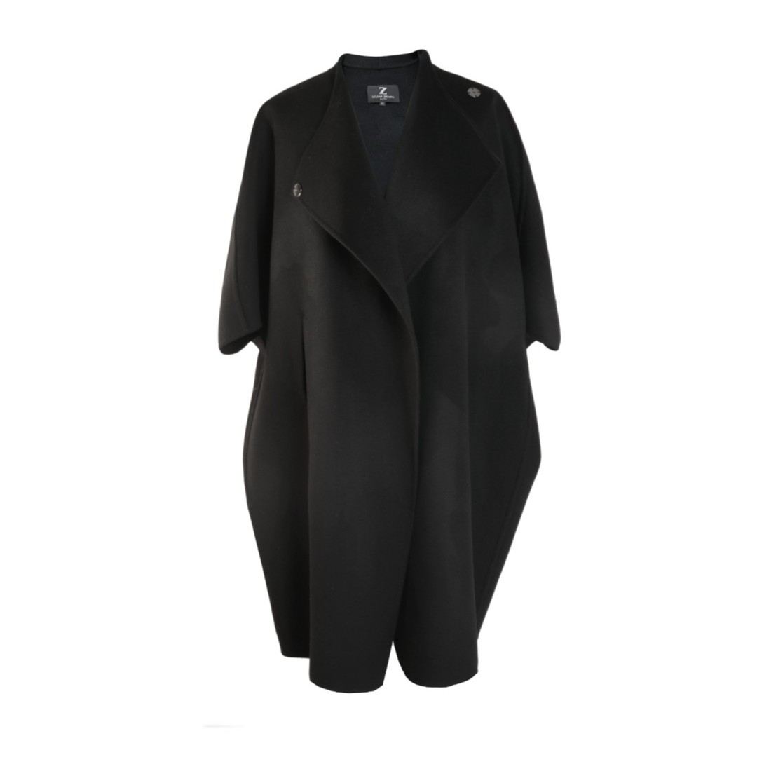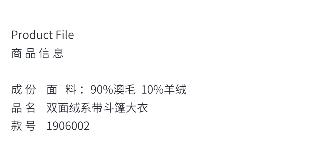 双面绒系带斗篷大衣 - 宽松休闲街头羊毛羊绒中长款外套 1906002