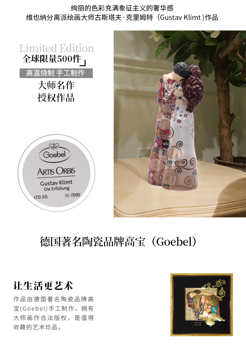 【6F】德国高宝Goebel进口陶瓷欧式摆件情侣结婚礼品限量收藏艺术品克里姆特
