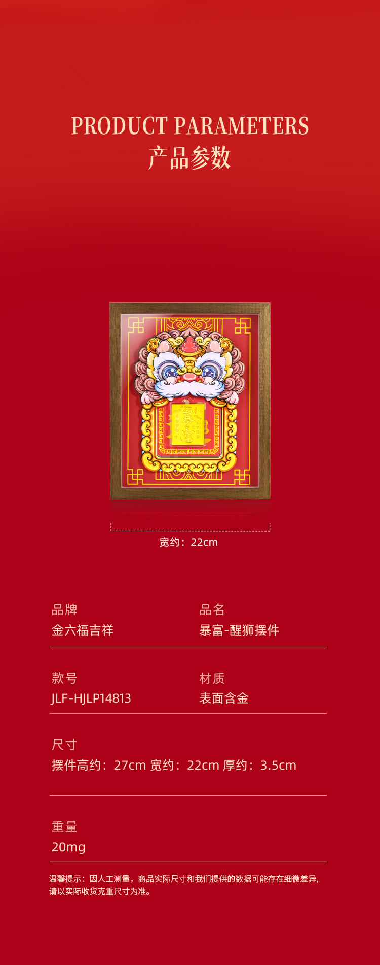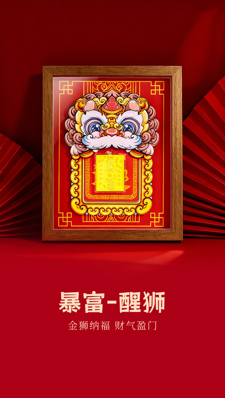 【金六福吉祥】·明星力荐“金狮聚宝”999足金黄金摆件 镇宅招财纳福 暴富醒狮财气盈门家居摆设