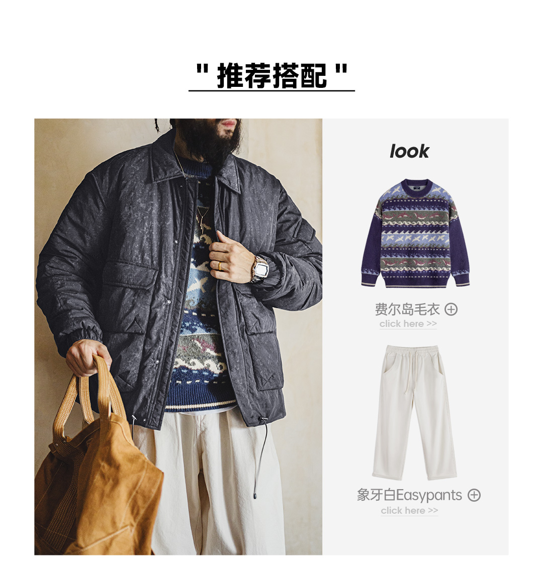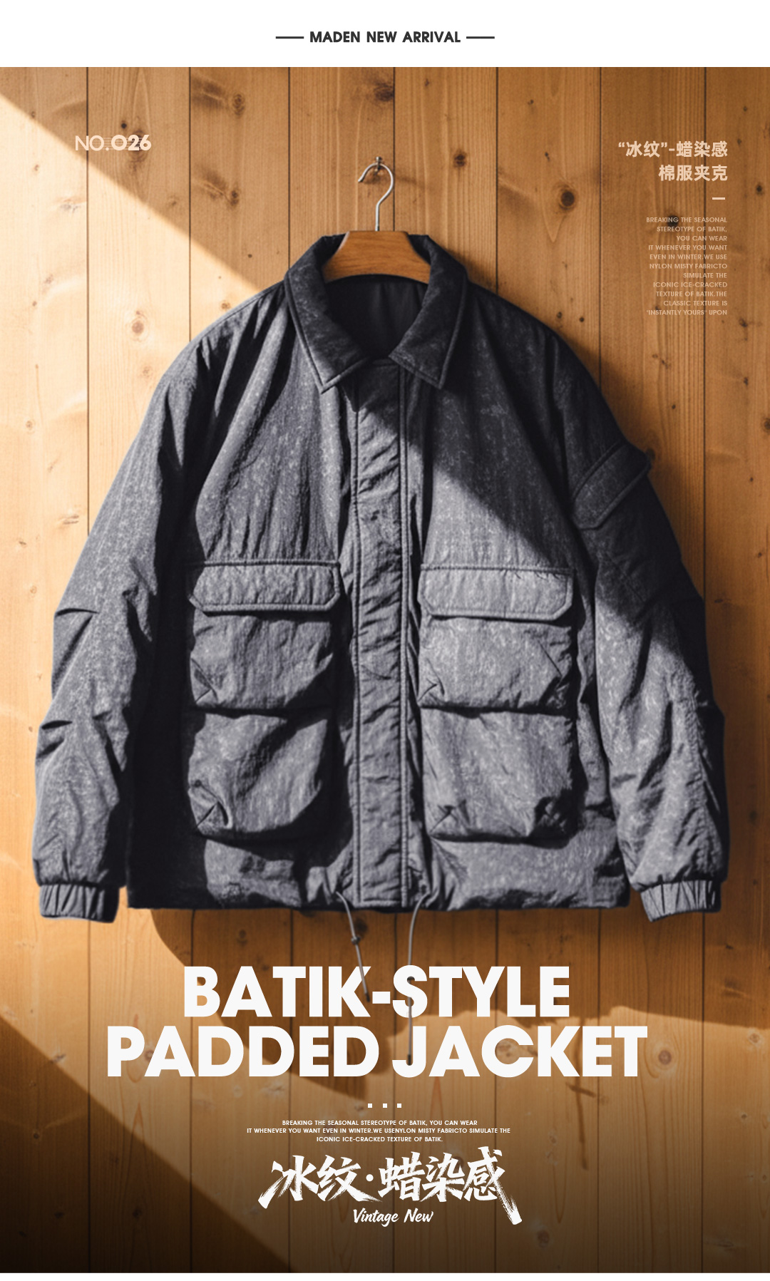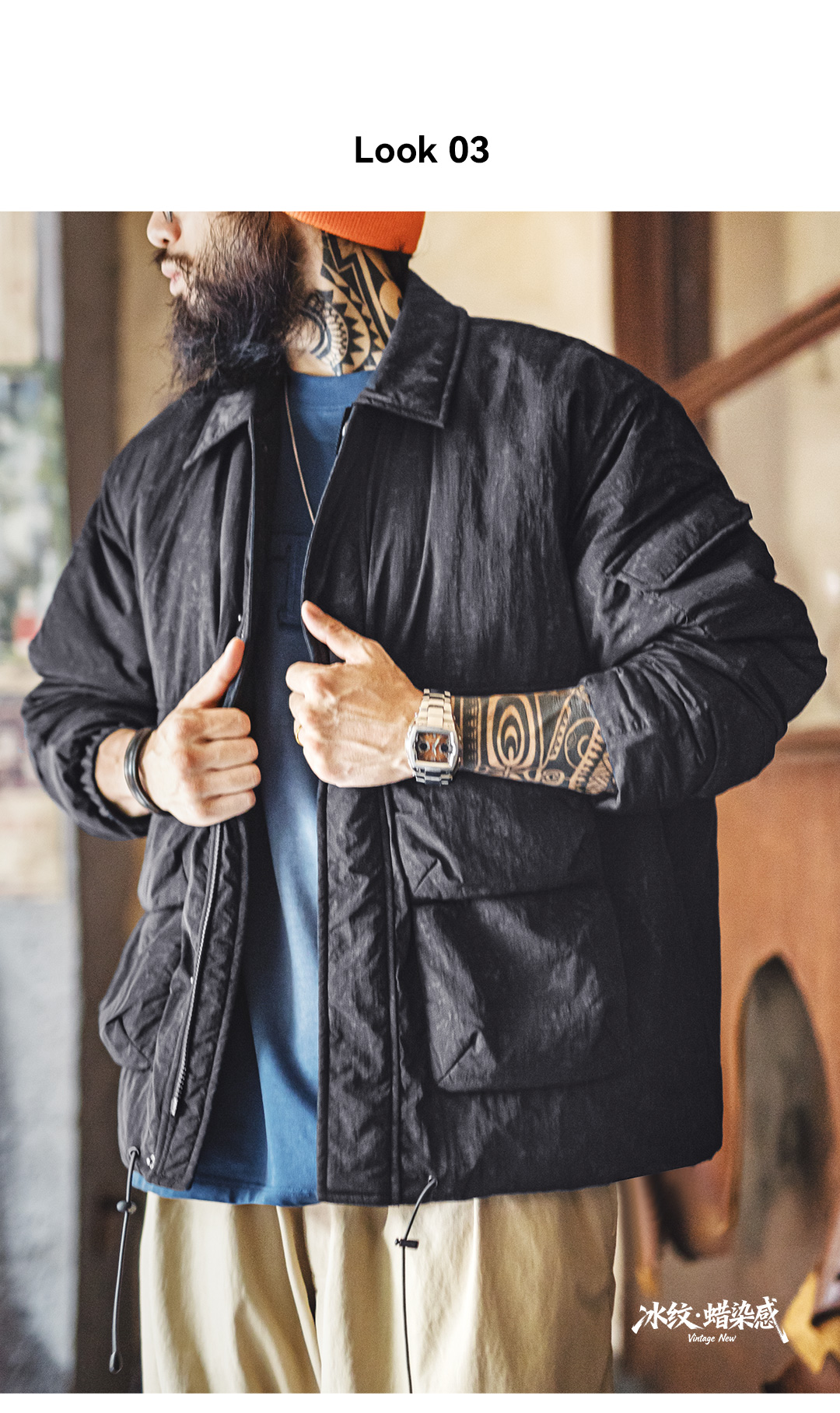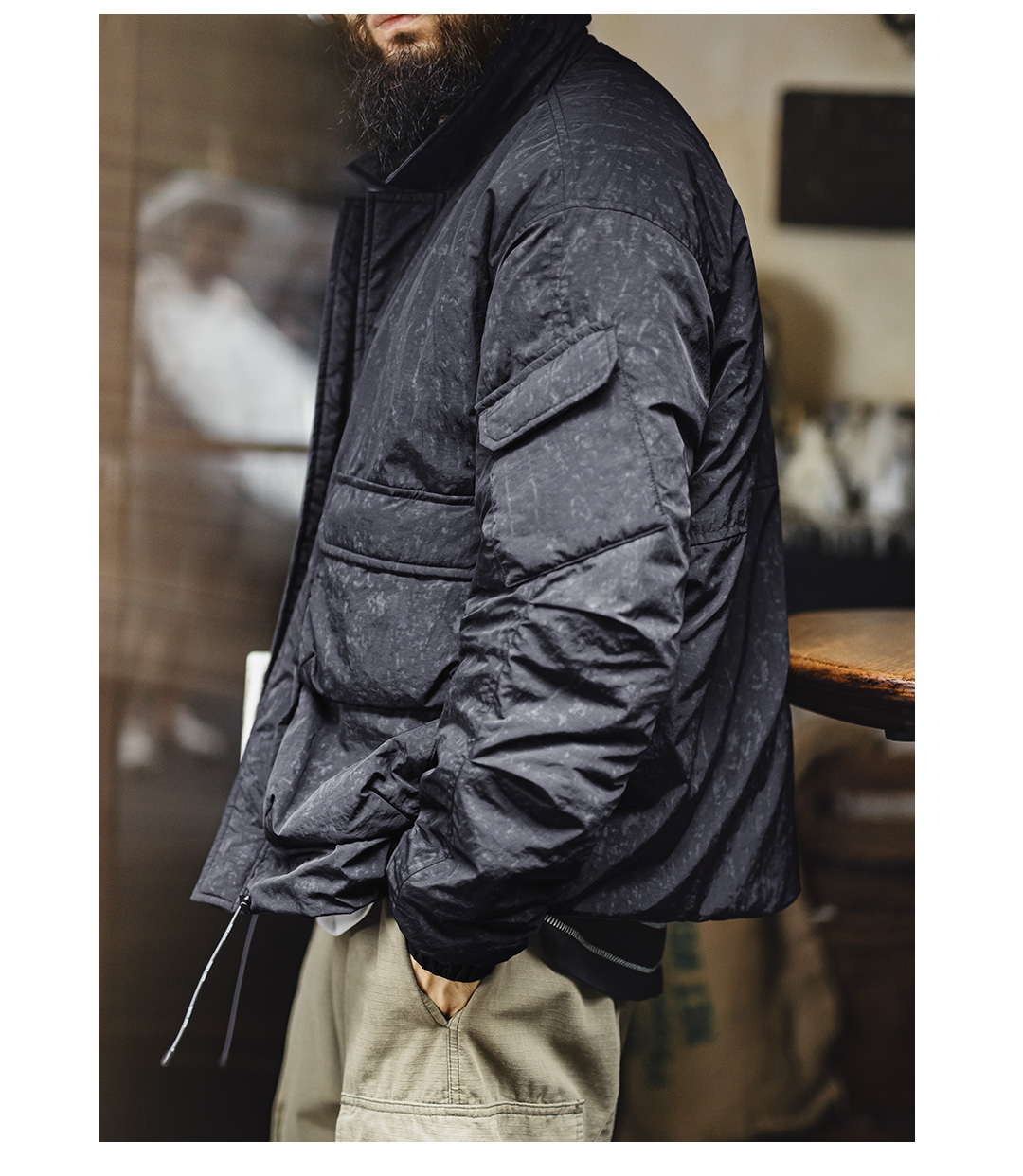 马登工装美式复古仿蜡染M65猎装夹克立领保暖硬汉棉服外套男秋冬