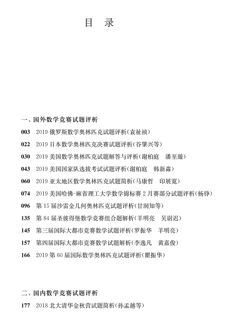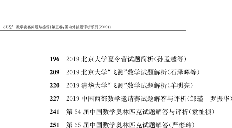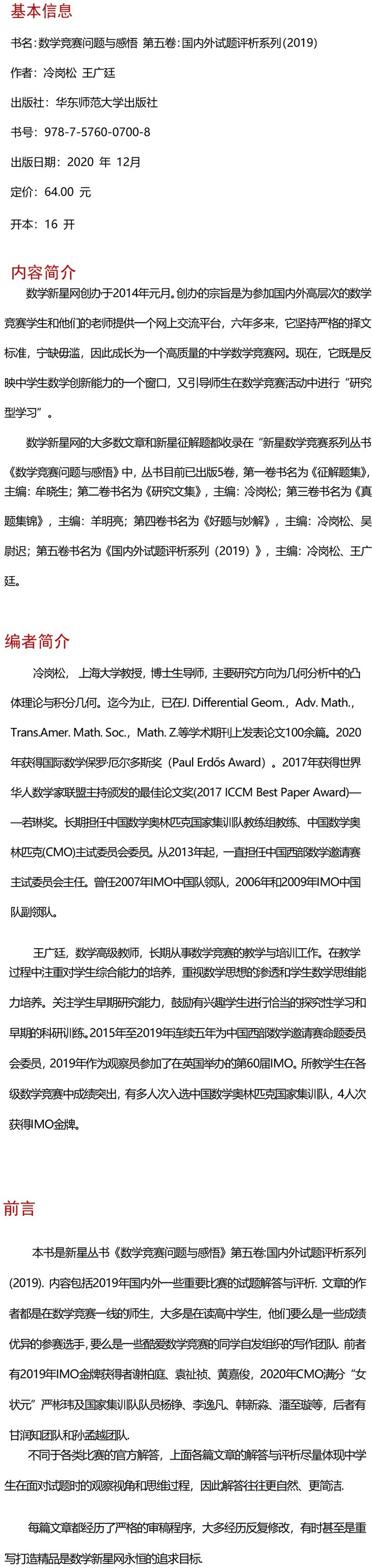 数学竞赛问题与感悟 第五卷:国内外试题评析系列2019 好题与妙解 数学新星网文精选 数学爱好者珍藏