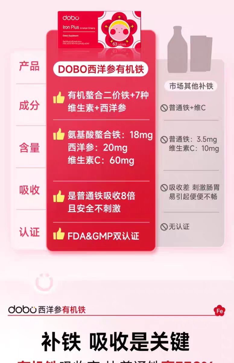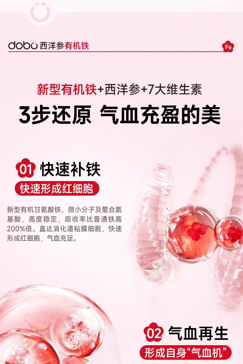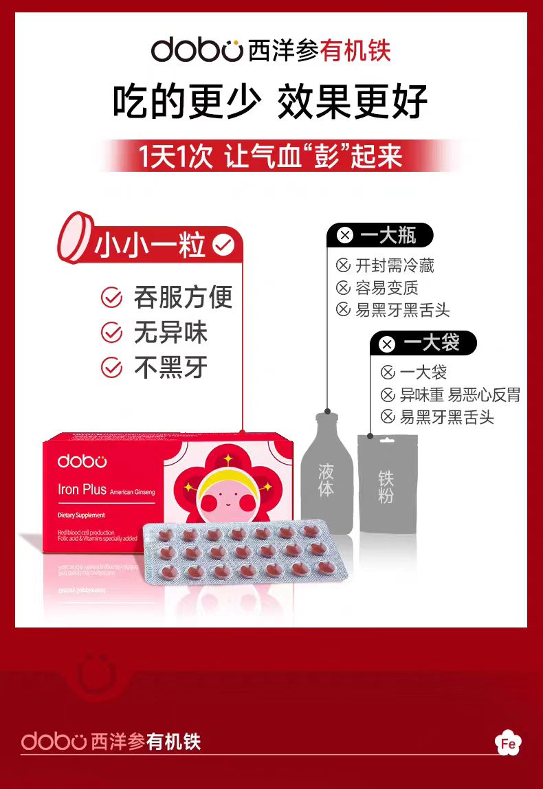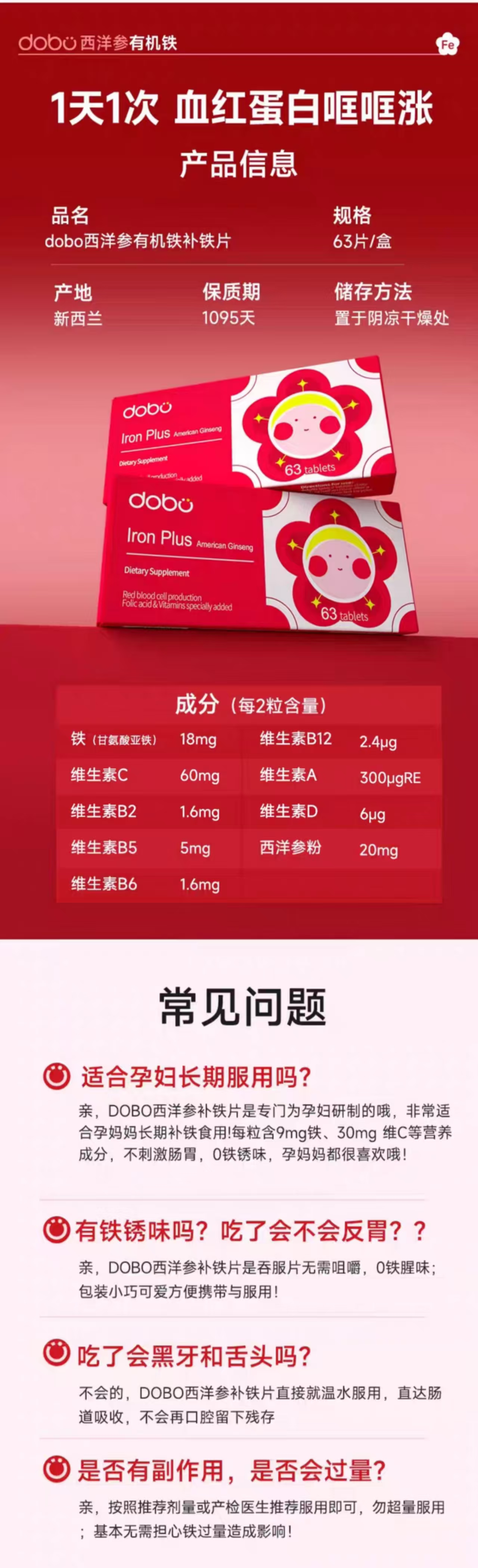 【女性补铁】DOBO高山花旗参铁元补铁片女性孕期经期补铁63粒/盒