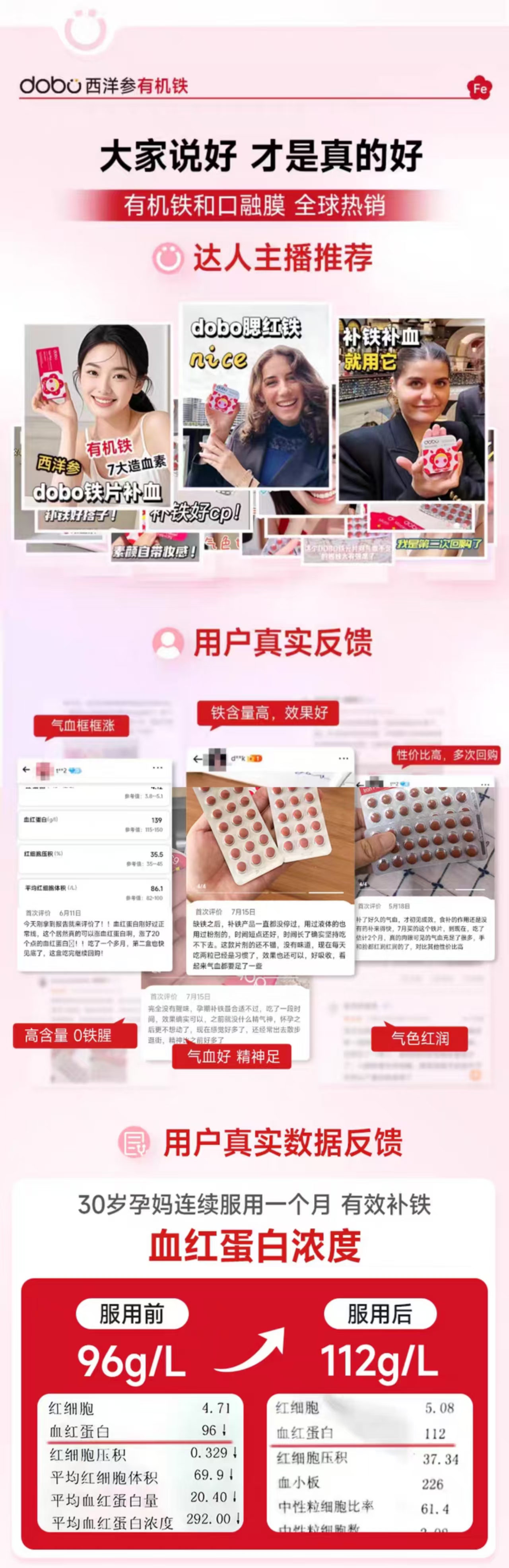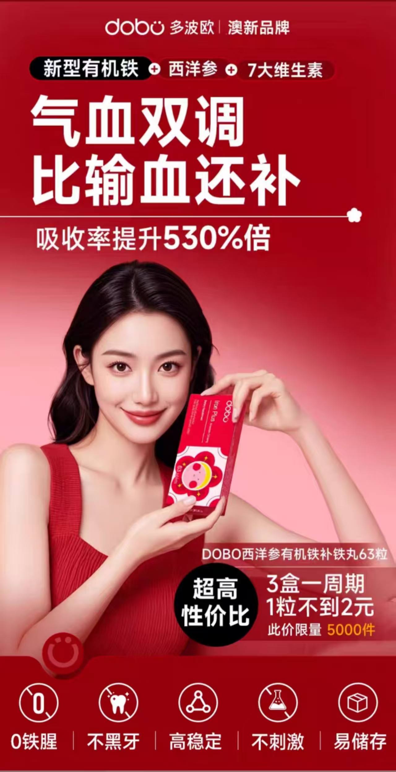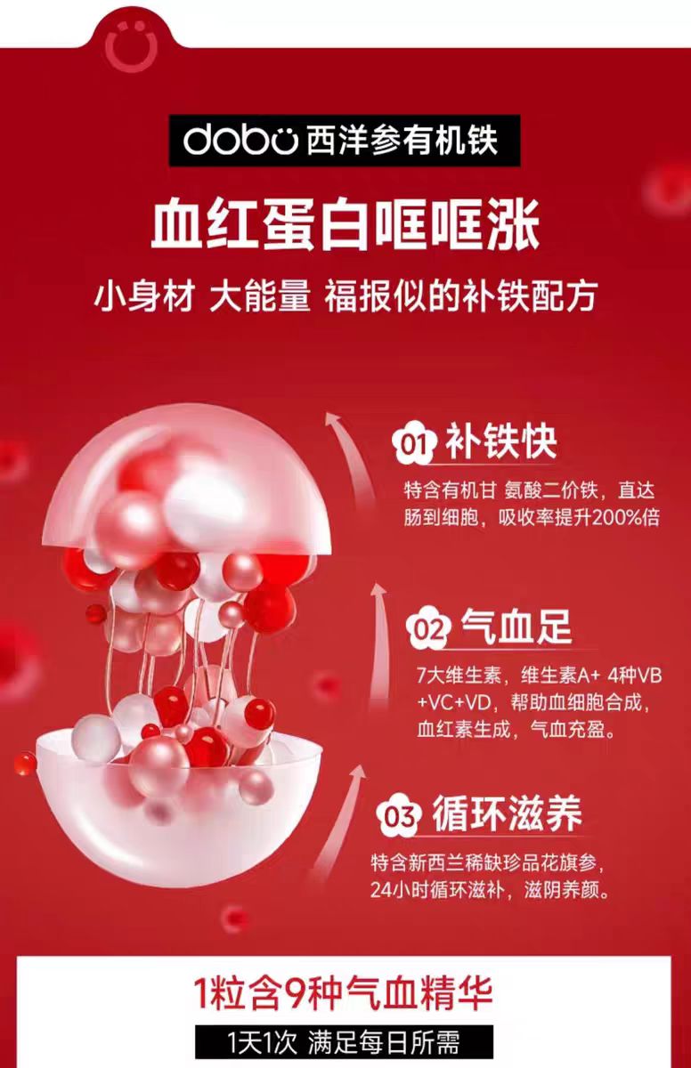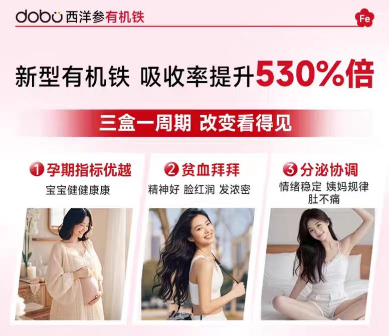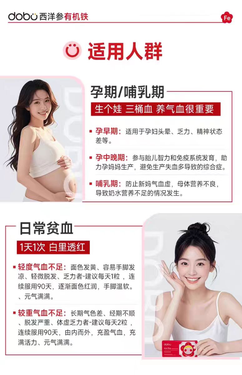 【女性补铁】DOBO高山花旗参铁元补铁片女性孕期经期补铁63粒/盒