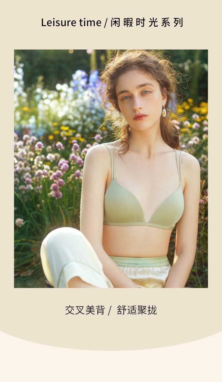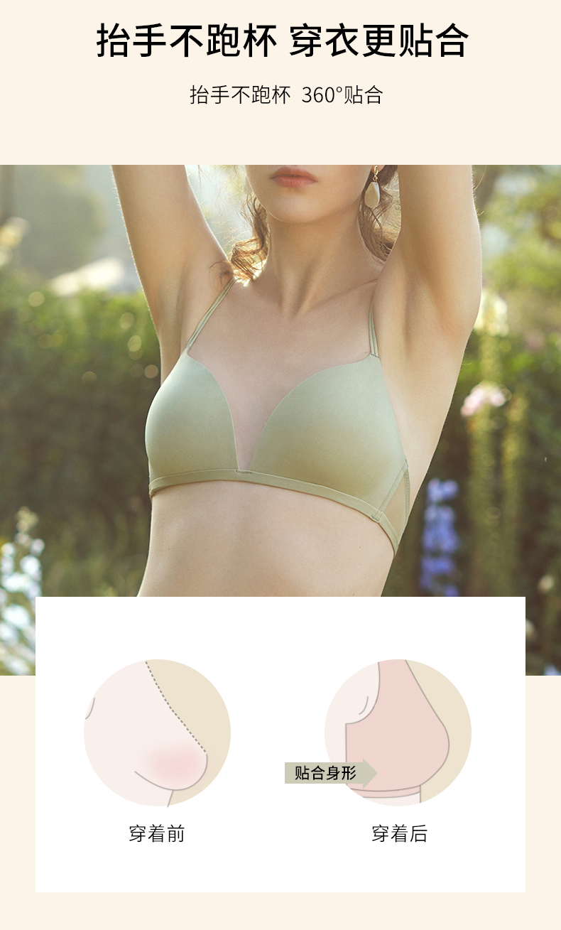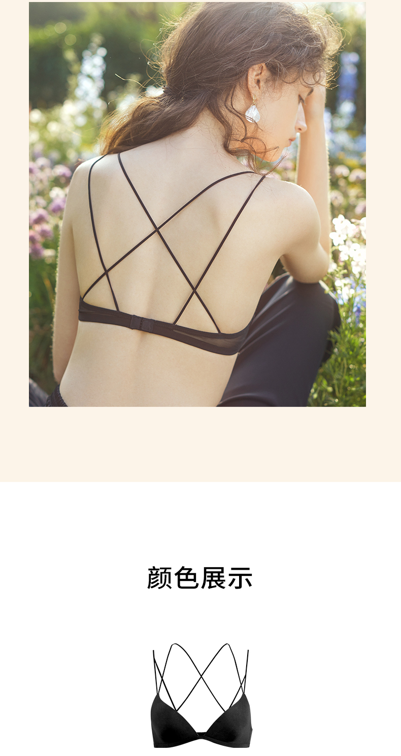 金三塔裸色交叉美背内衣女简约无痕小胸聚拢低胸真丝无钢圈文胸 NZFBC397