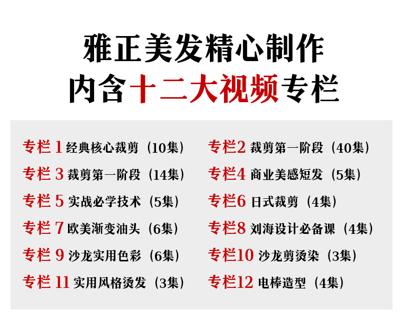 雅正美发精心制作内含十二大视频专栏资料