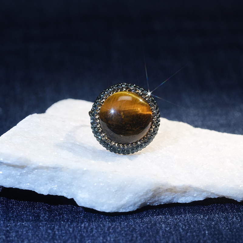 北京仓|SORU-Tigers Eye-虎眼石 镶水晶 戒指[英国设计师]