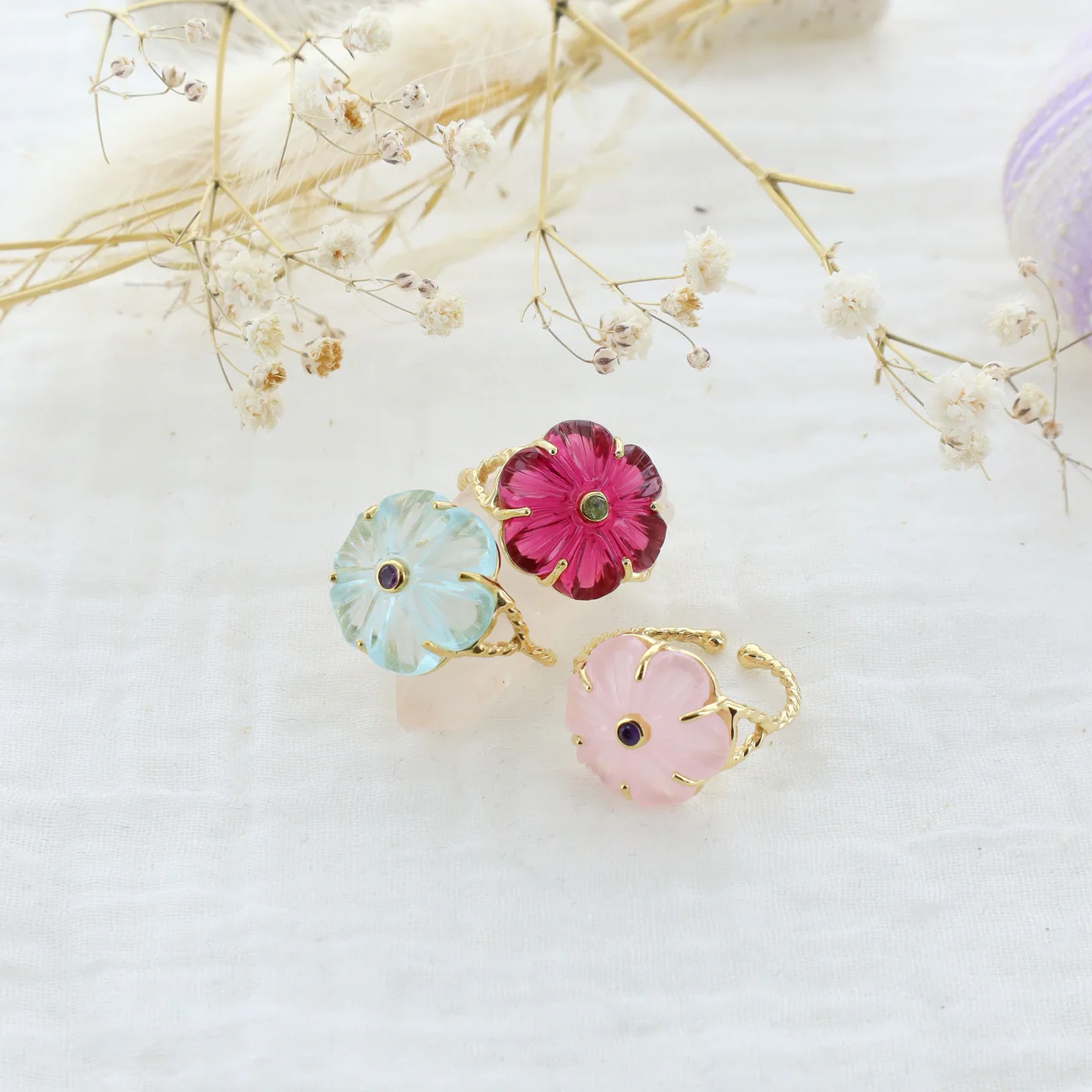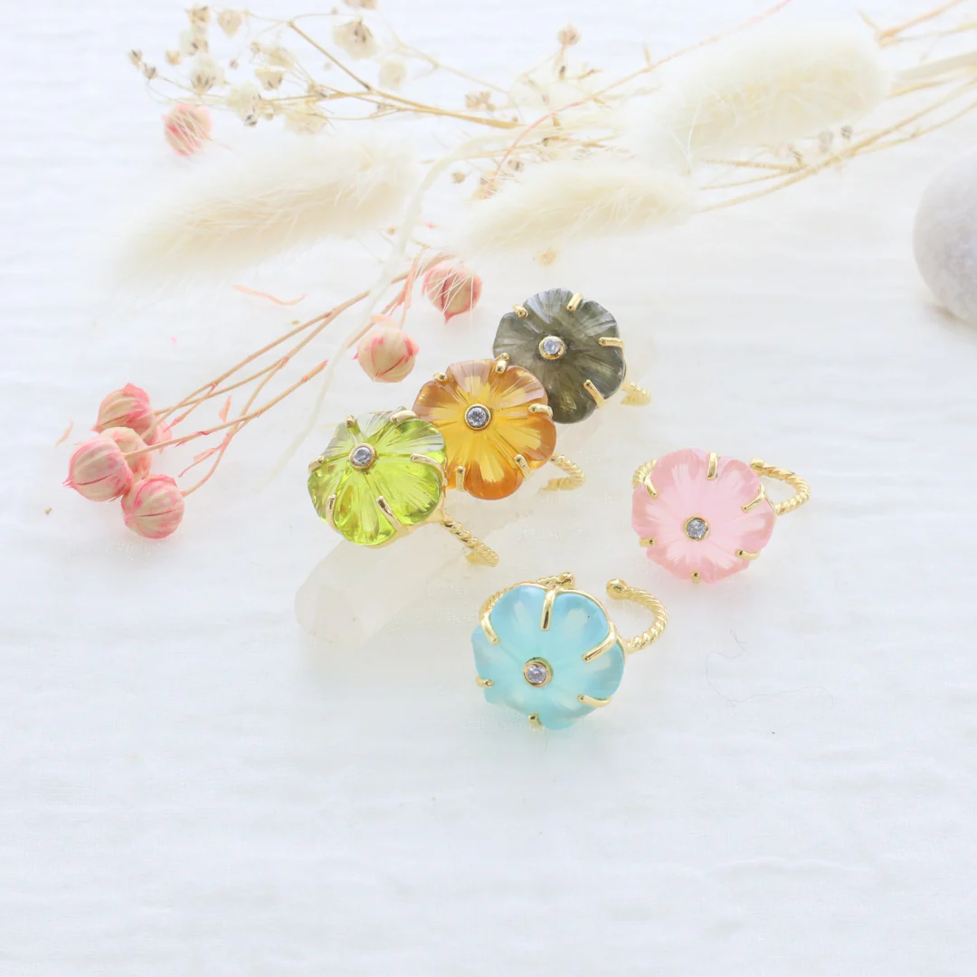 北京仓|Leticia Ponti-Bague Iris-粉色玉髓 花朵 戒指[法国设计师]
