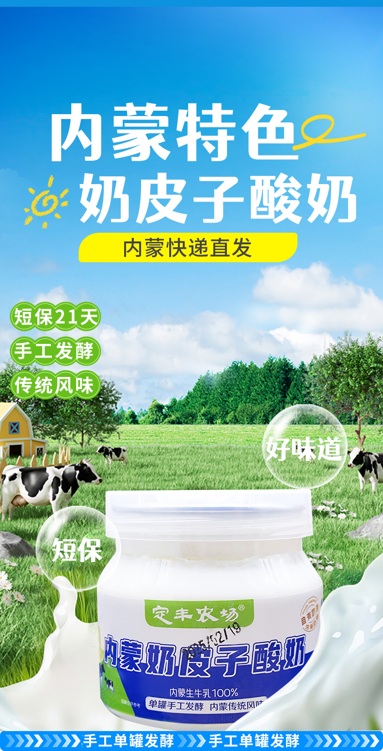 定丰农场 内蒙奶皮子酸奶(268g*6罐)新鲜现做单罐手工发酵
