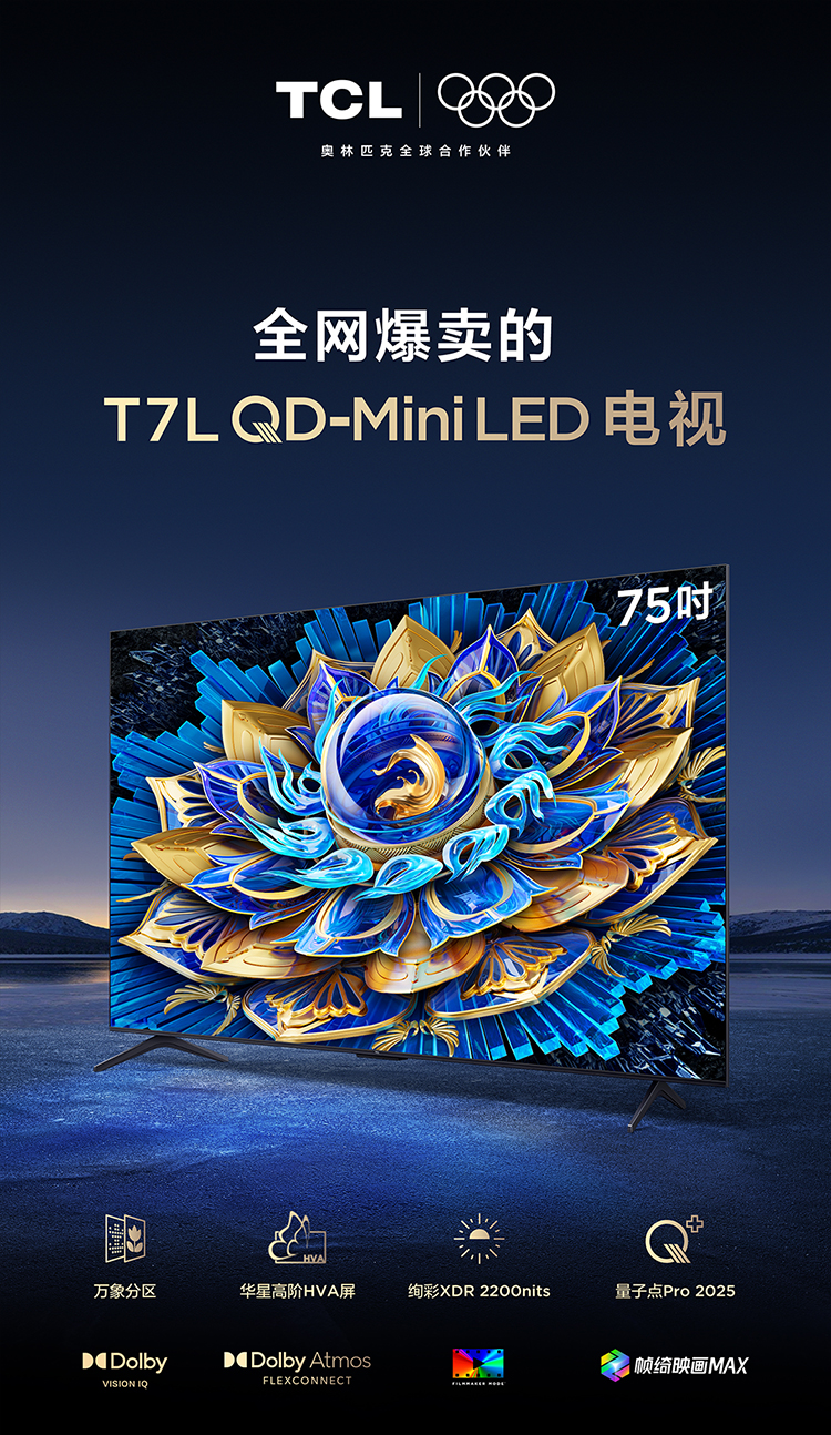 TCL电视 75T7L 75英寸 QD-Mini LED 华星高阶HVA屏 万象分区 绚彩XDR 2200nits 超薄电视