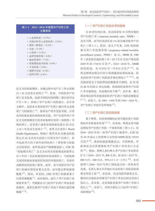 第1章 发达国家孕产妇死亡:流行病学和可预防的原因