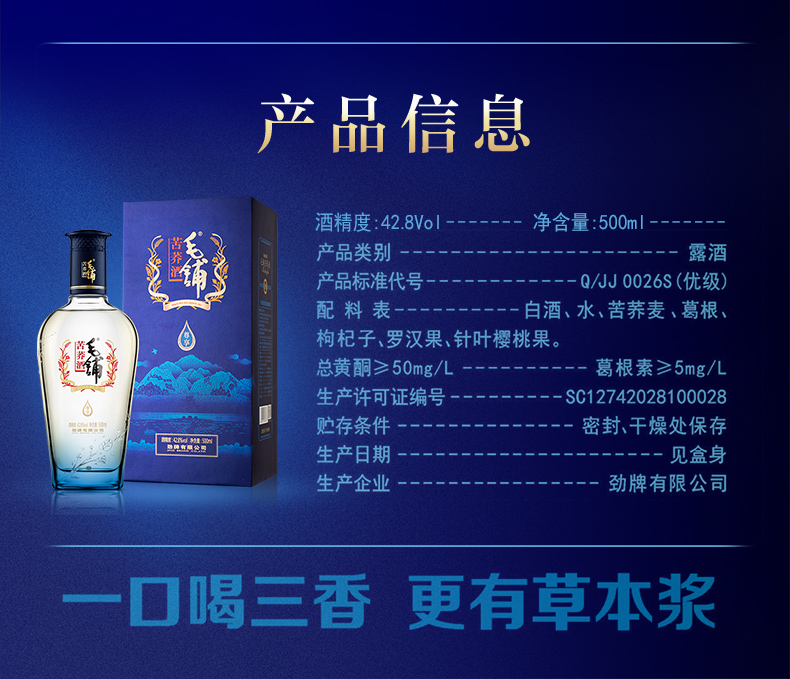 500ml42.8度毛铺苦荞酒尊享2瓶